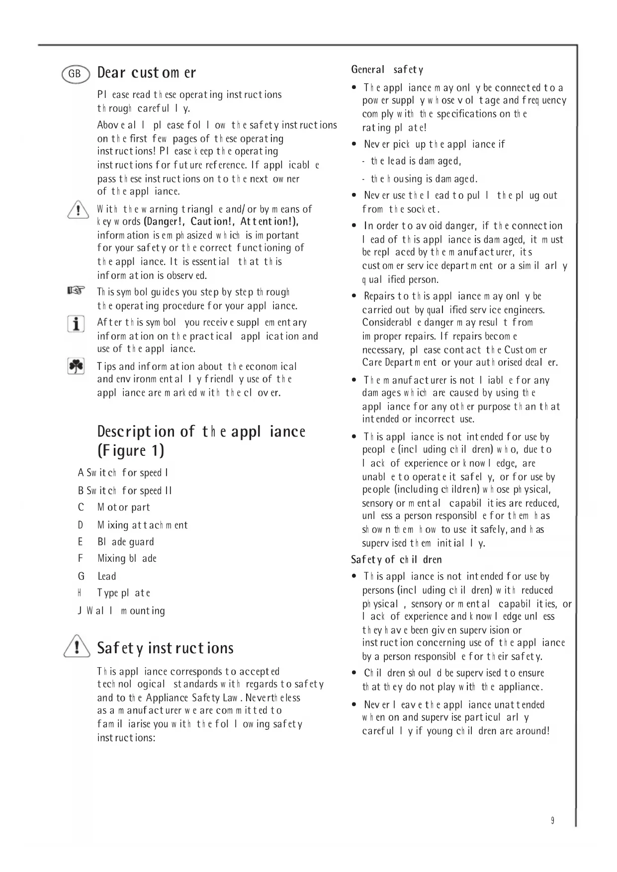 Download the instructions for your Mixer in PDF format for free! Find your manual STM1100 - AEG and take your electronic device back in hand. On this page are published all the documents necessary for the use of your device. STM1100 by AEG.
