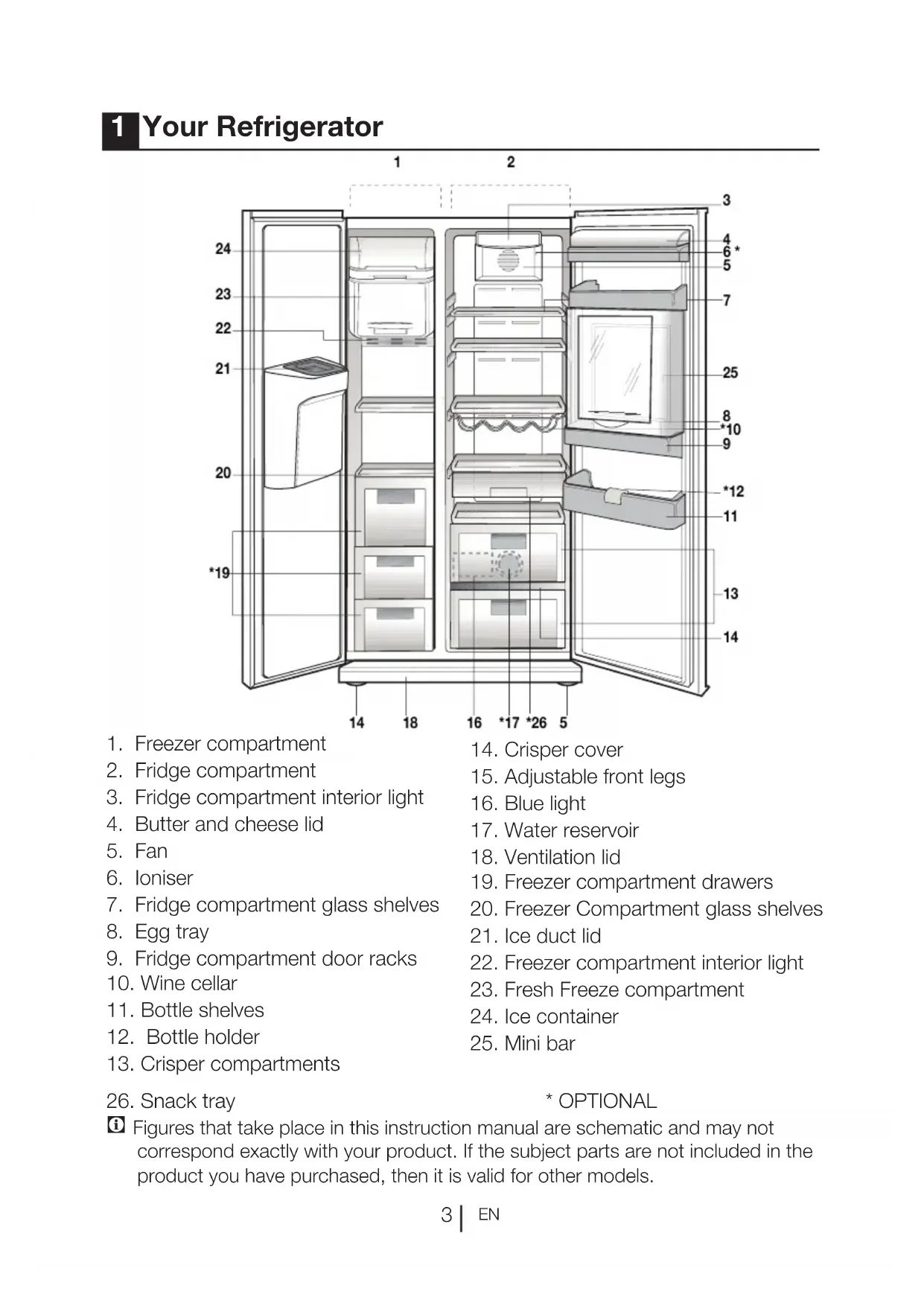 - For products with a freezer compartment; Do not eat cone ice cream and ice cubes immediately after you take them out of the freezer compartment! (This may cause frostbite in your mouth.)