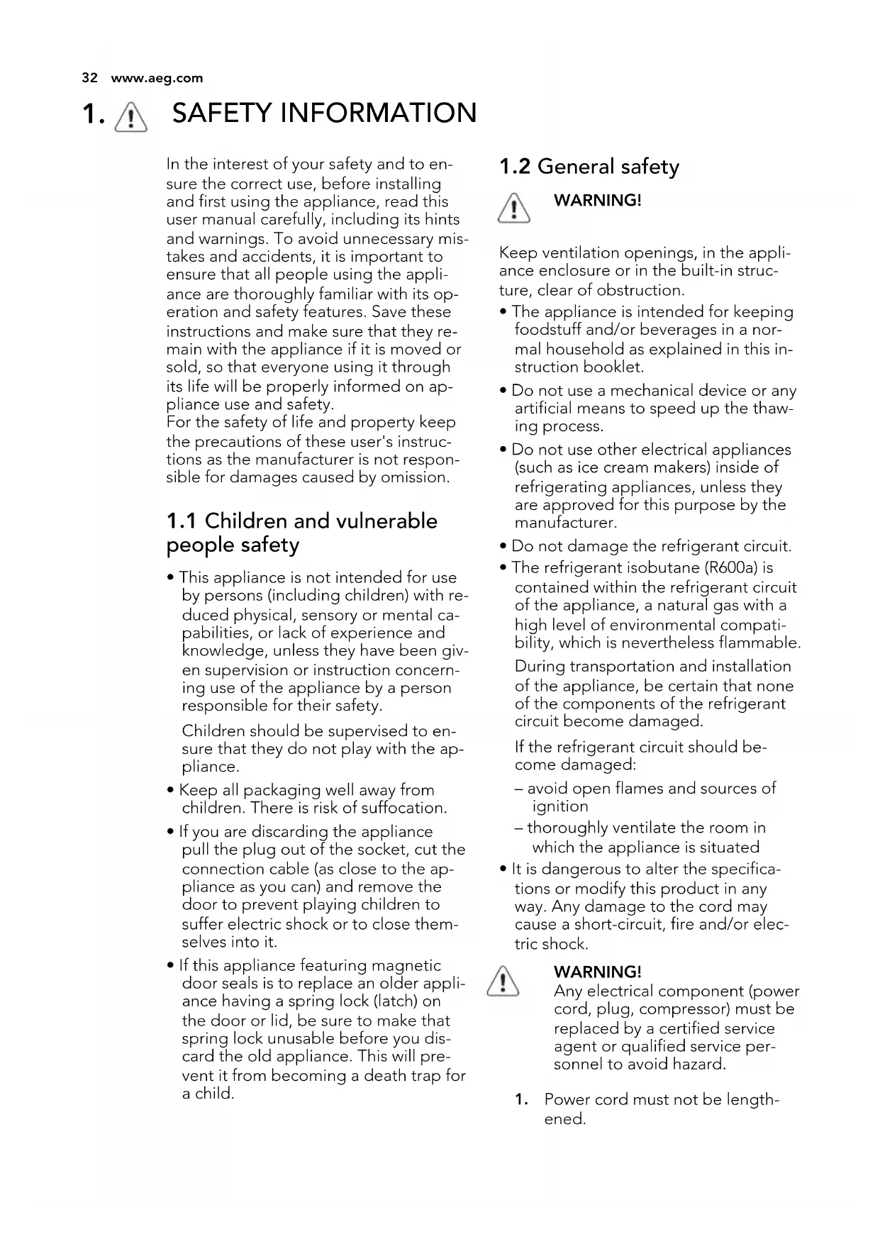 • The refrigerant isobutane (R600a) is