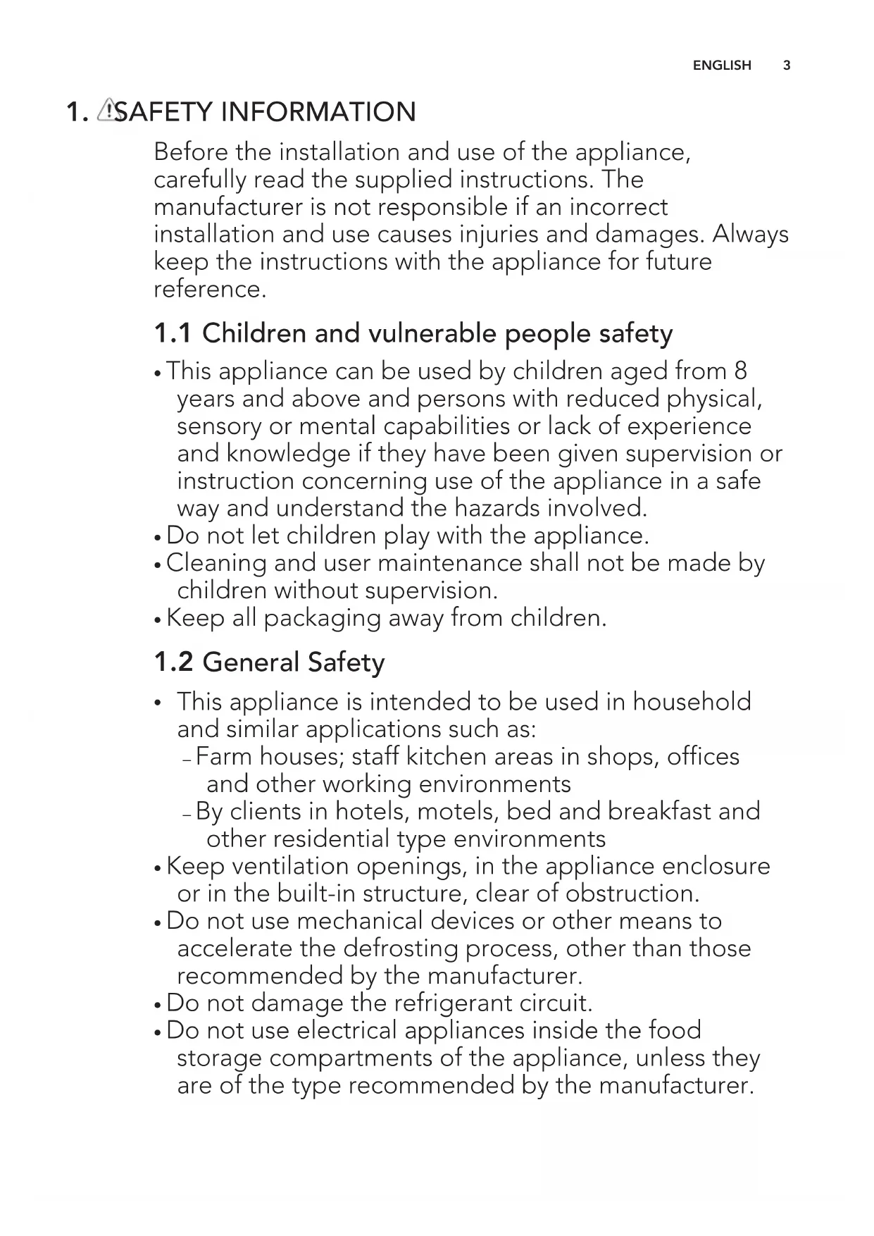 - Do not use electrical appliances inside the food storage compartments of the appliance, unless they are of the type recommended by the manufacturer. ENGLISH 3• Do not use water spray and steam to clean the appliance.