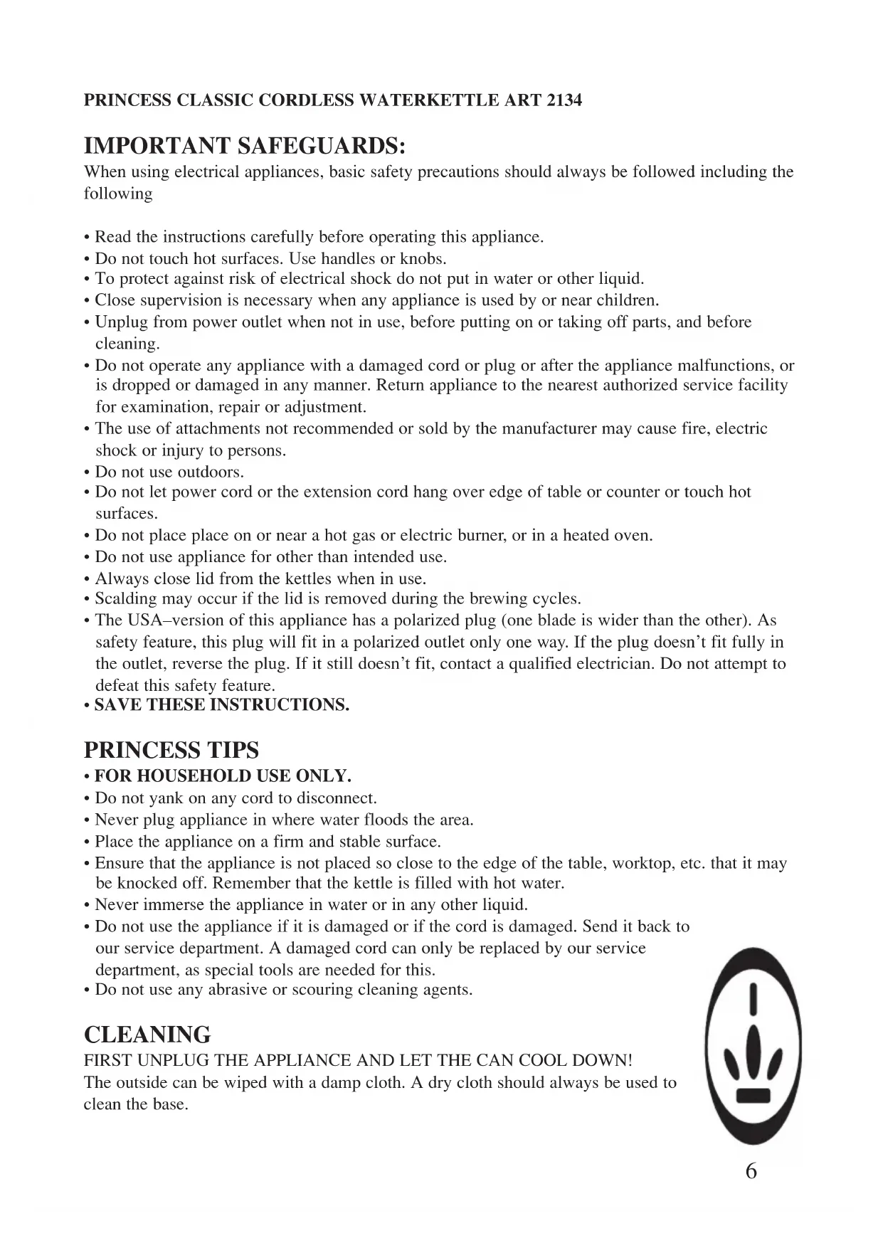 232134 - Kettle PRINCESS - Free user manual and instructions
