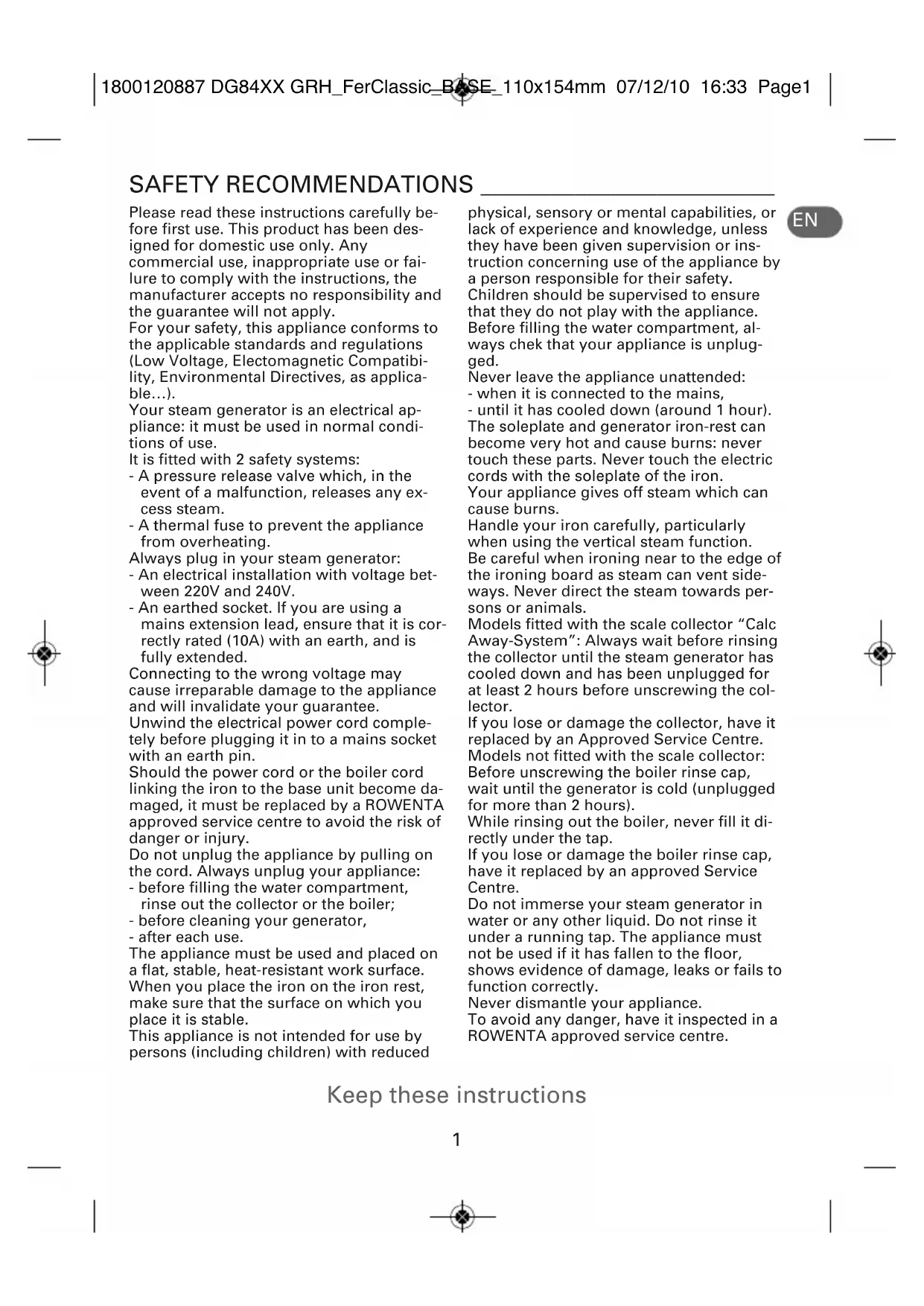 1800120887 DG84XX GRH_FerClassic_BASE_110x154mm 07/12/10 16:33 Page6SAFETY RECOMMENDATIONS _________________________
