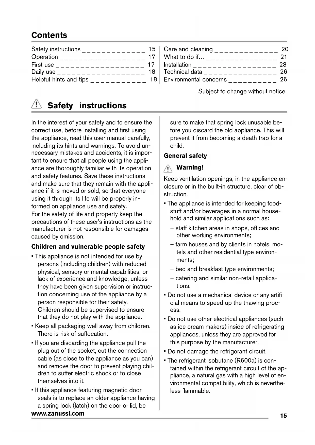 Download the instructions for your Fridge in PDF format for free! Find your manual ZRG14800 - ZANUSSI and take your electronic device back in hand. On this page are published all the documents necessary for the use of your device. ZRG14800 by ZANUSSI.