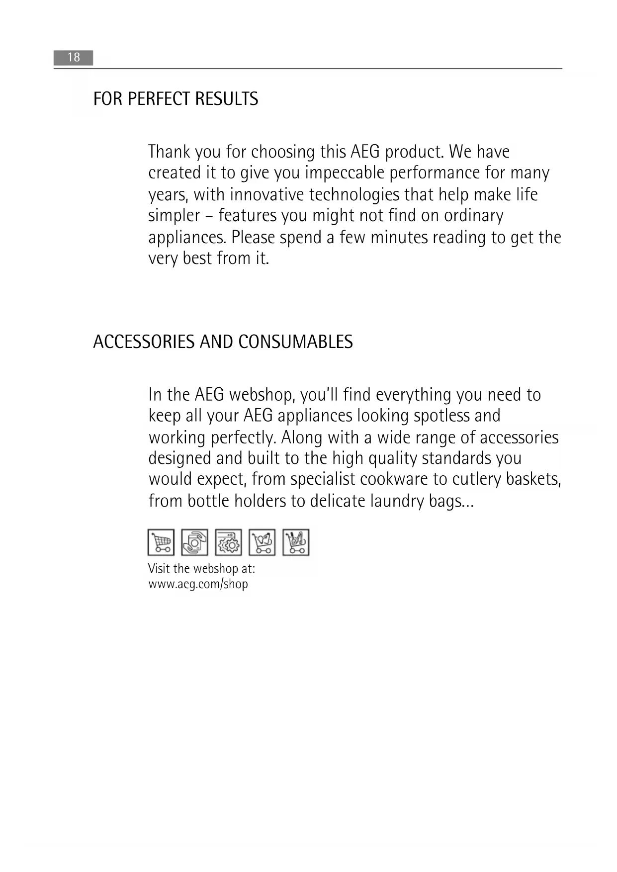 Thank you for choosing this AEG product. We have created it to give you impeccable performance for many years, with innovative technologies that help make life simpler – features you might not find on ordinary appliances. Please spend a few minutes reading to get the very best from it.