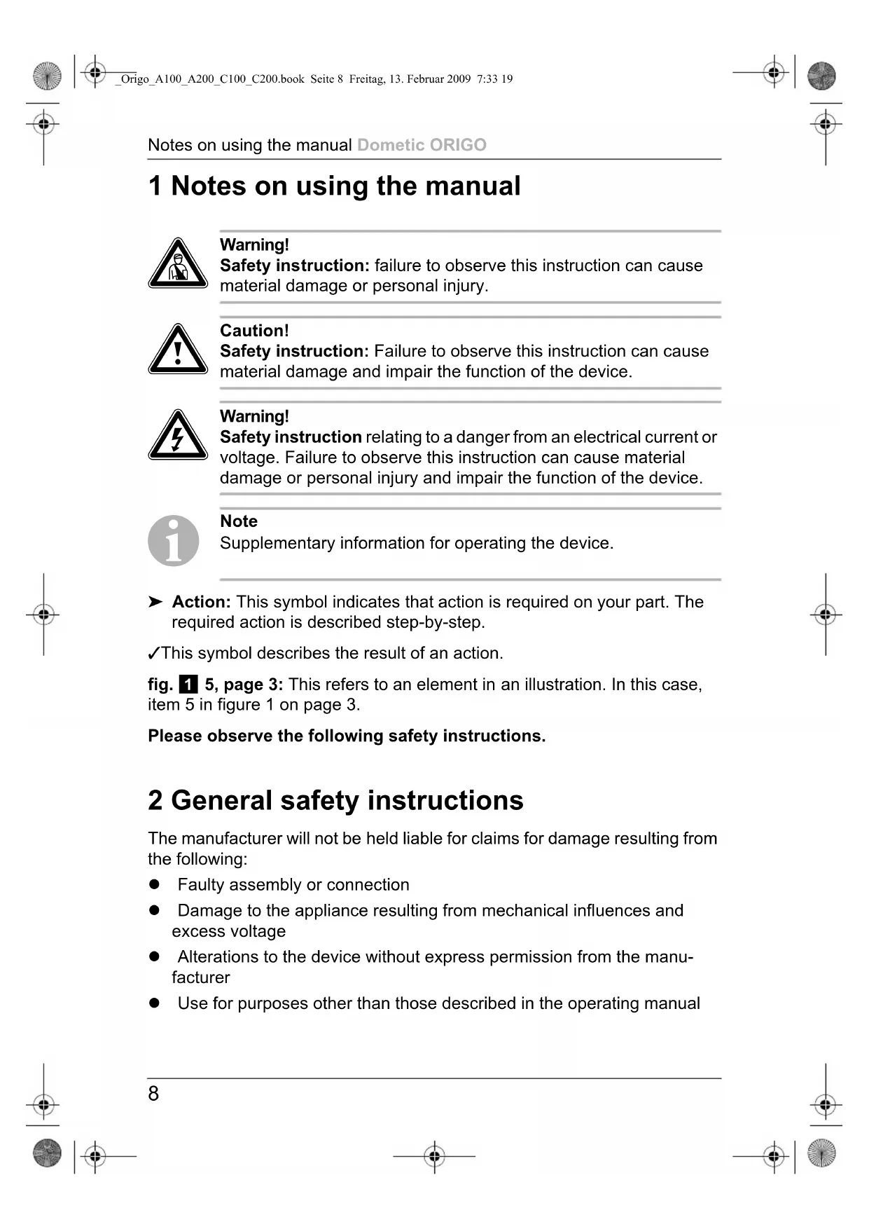 _Origo_A100_A200_C100_C200.book Seite 8 Freitag, 13. Februar 2009 7:33 19Dometic ORIGO General safety instructions