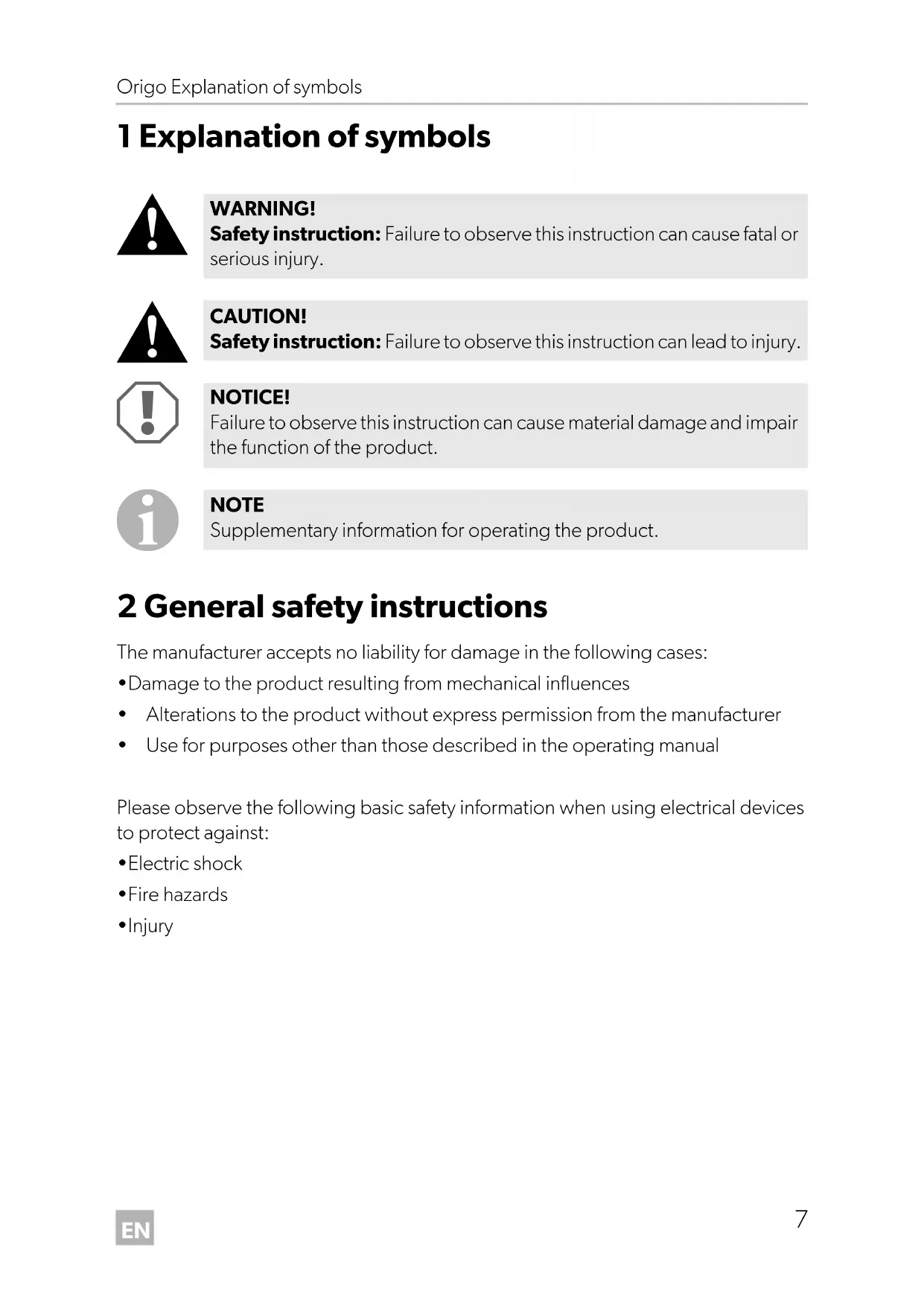 Origo_2000_4100.book Seite 7 Freitag, 6. Januar 2017 11:40 11EN General safety instructions Origo