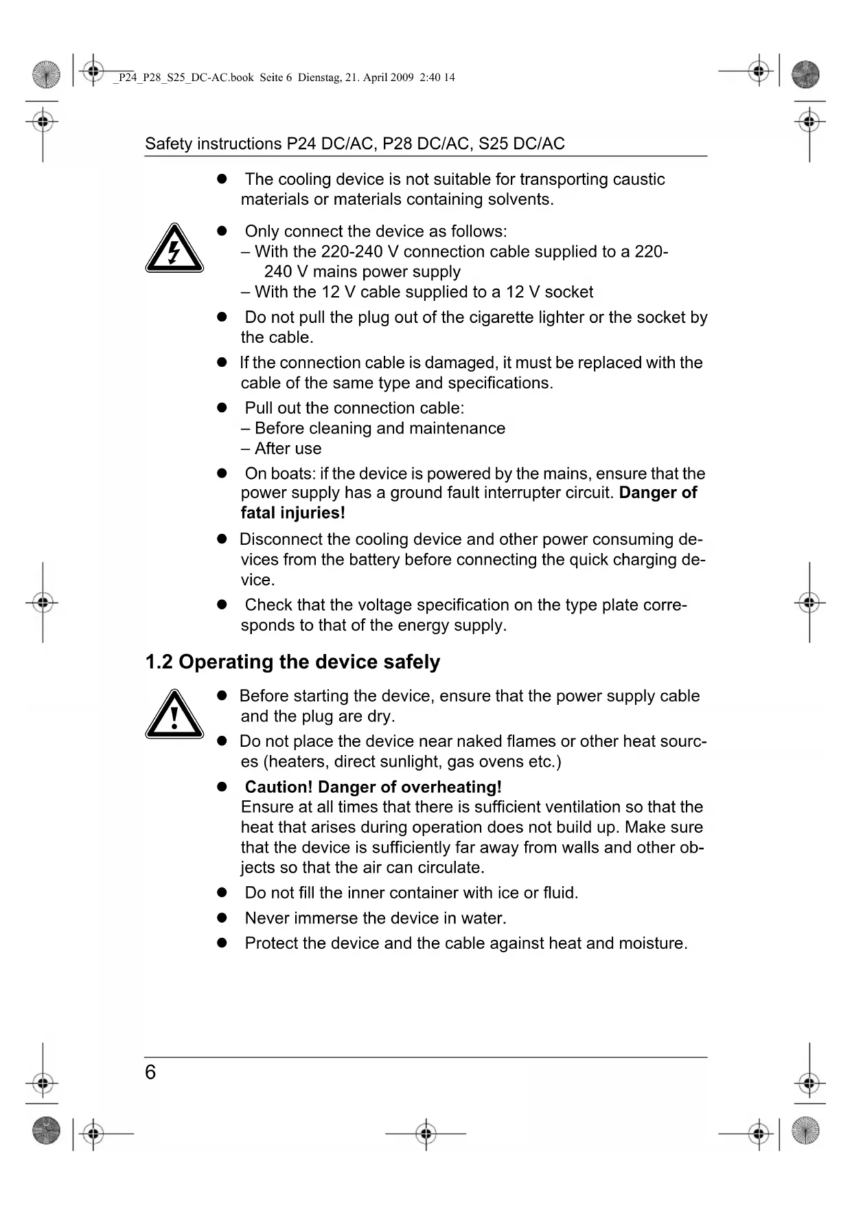 _P24_P28_S25_DC-AC.book Seite 5 Dienstag, 21. April 2009 2:40 14Safety instructions P24 DC/AC, P28 DC/AC, S25 DC/AC