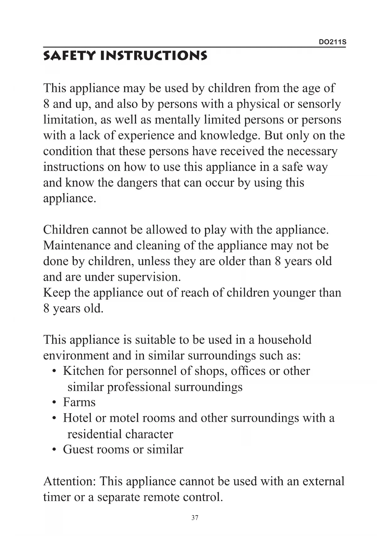 SAFETY INSTRUCTIONS This appliance may be used by children from the age of