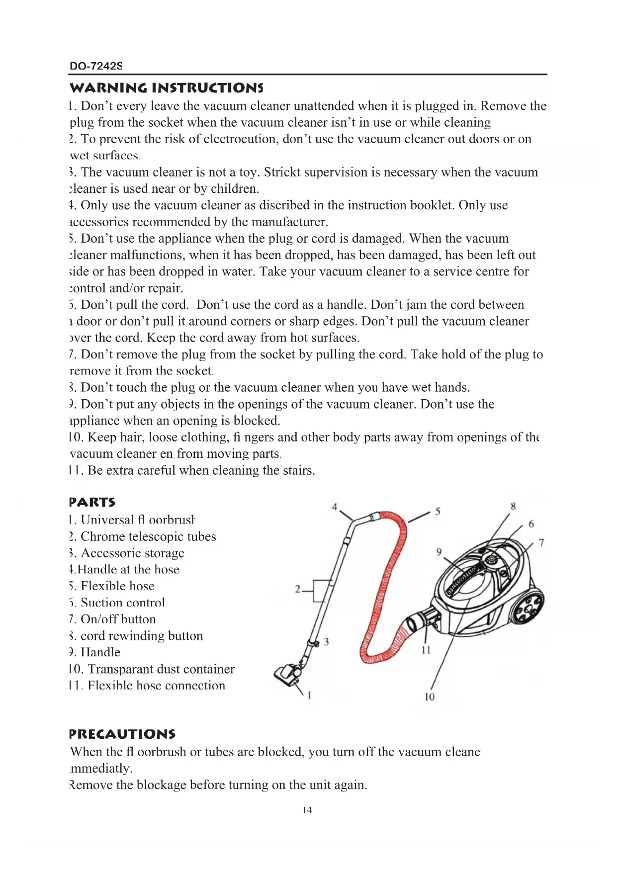PRECAUTIONS When the fl oorbrush or tubes are blocked, you turn off the vacuum cleaner