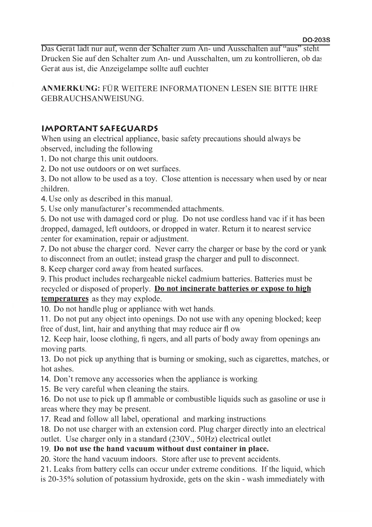 3. Replace dust cup fi lter.DO-203S FREQUENTLY ASKED QUESTIONS REGARDING RECHARGEABLE FREQUENTLY ASKED QUESTIONS REGARDING RECHARGEABLE UNITS Can I use a charging adaptor other than the one supplied with the unit ?