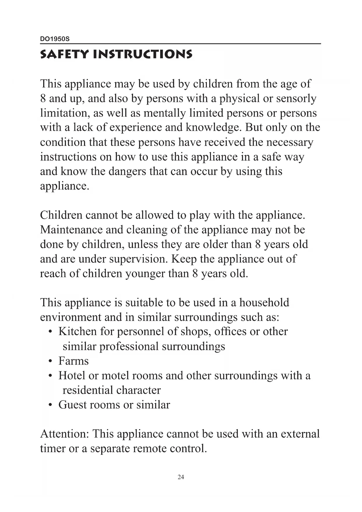 - Guest rooms or similar Attention: This appliance cannot be used with an external timer or a separate remote control.DO1950S