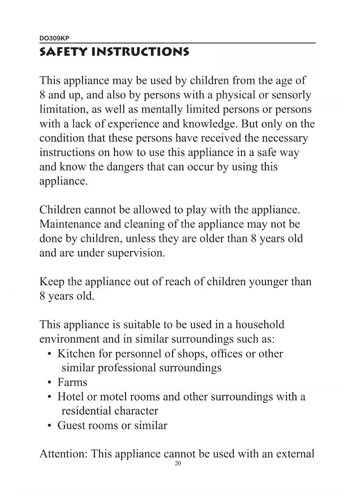 Attention: This appliance cannot be used with an external