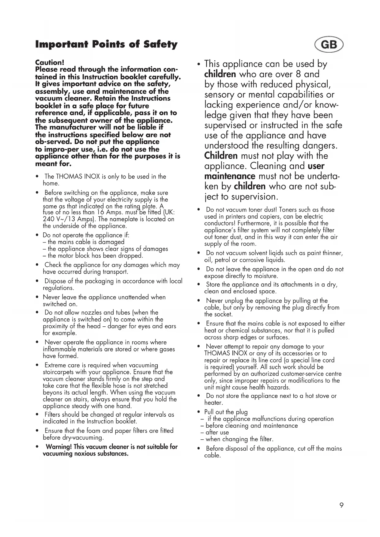 - The THOMAS INOX is only to be used in the home.