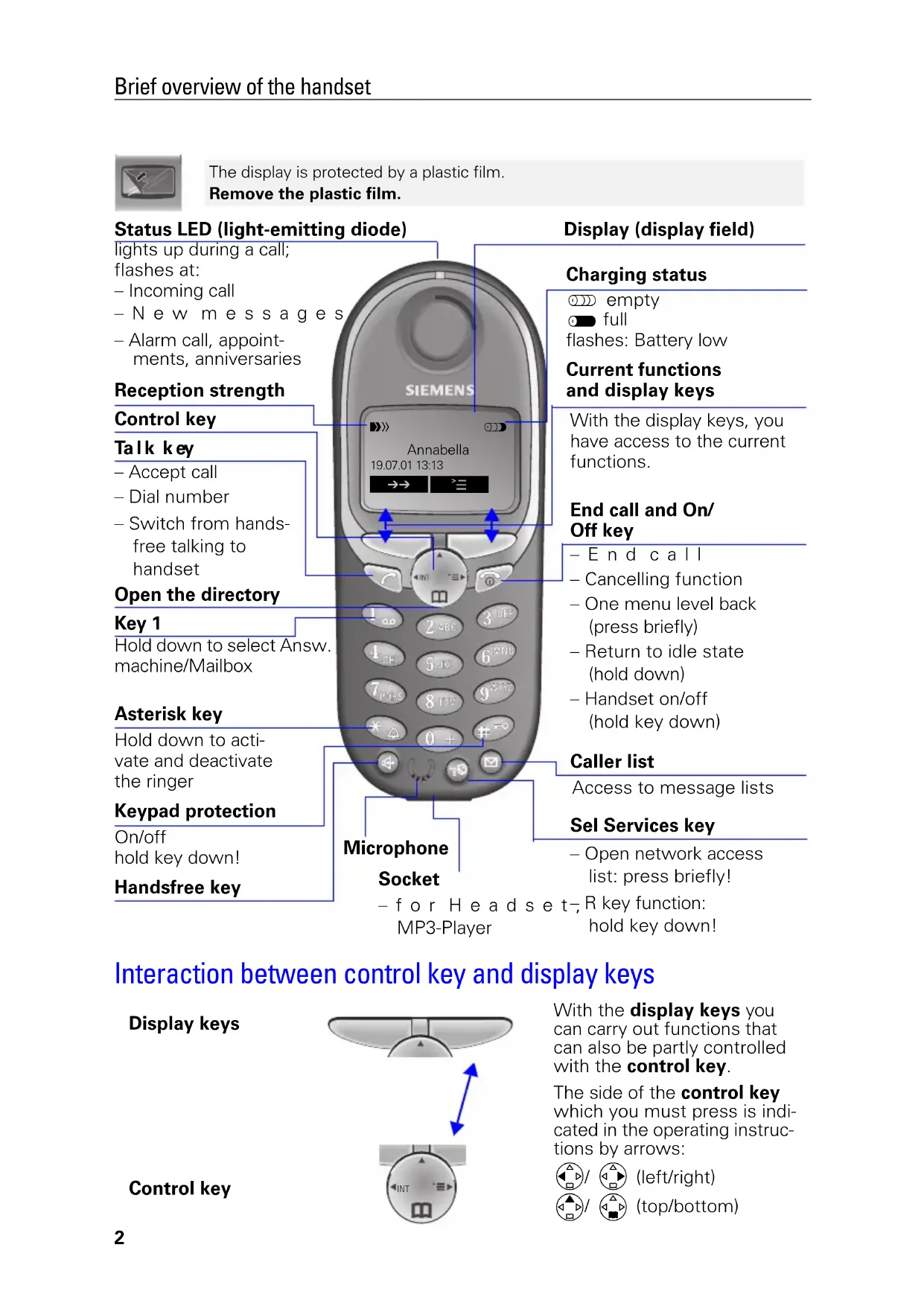 06.05.02 Brief overview of the handset Interaction between control key and display keys