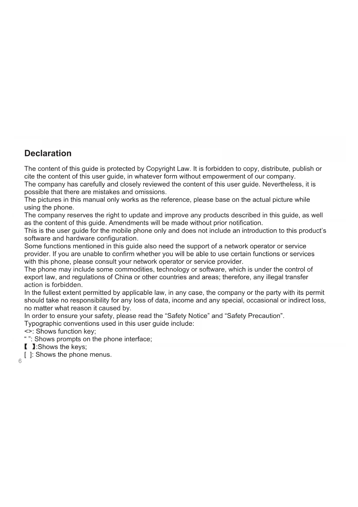 This is the user guide for the mobile phone only and does not include an introduction to this product's software and hardware configuration.