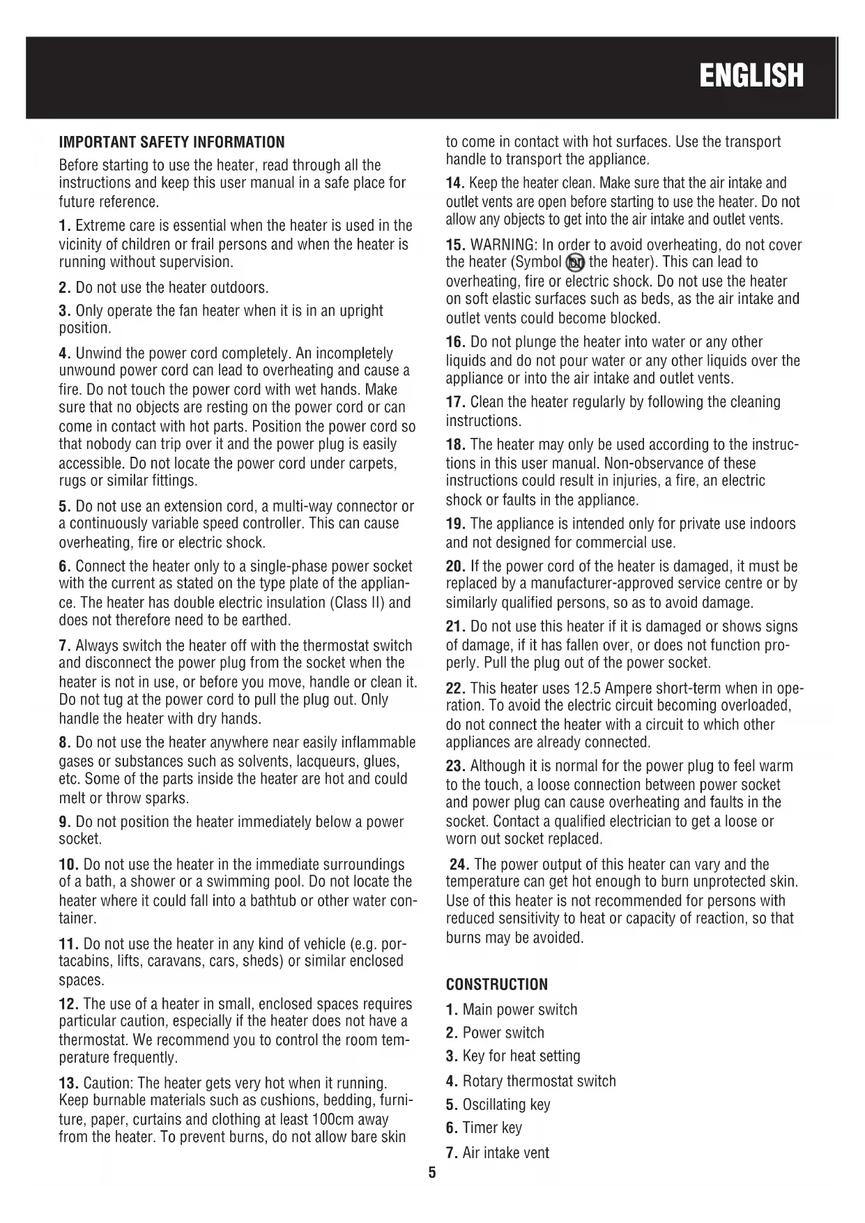 ENGLISH IMPORTANT SAFETY INFORMATION Before starting to use the heater, read through all the