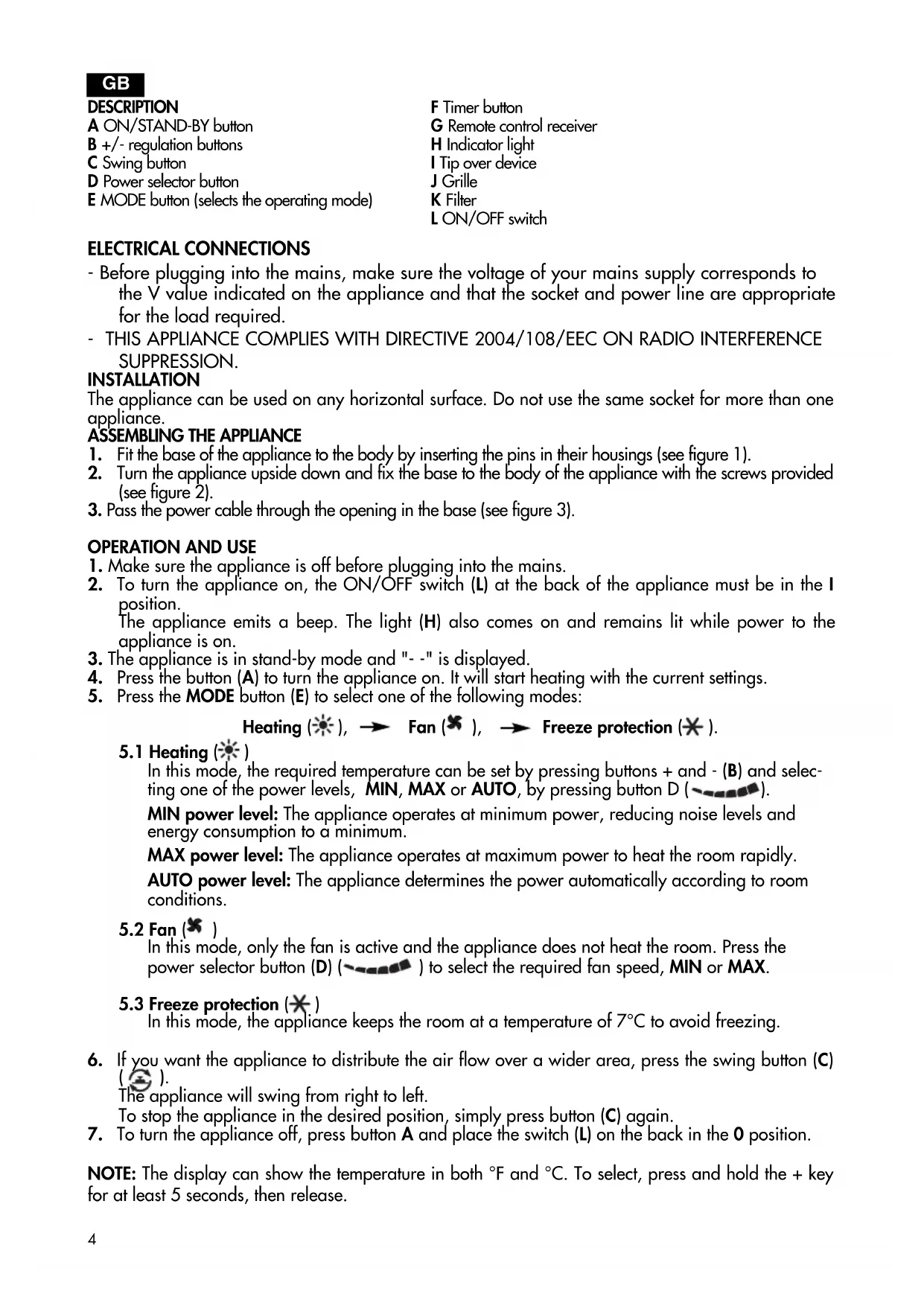 - THIS APPLIANCE COMPLIES WITH DIRECTIVE 2004/108/EEC ON RADIO INTERFERENCE SUPPRESSION.
