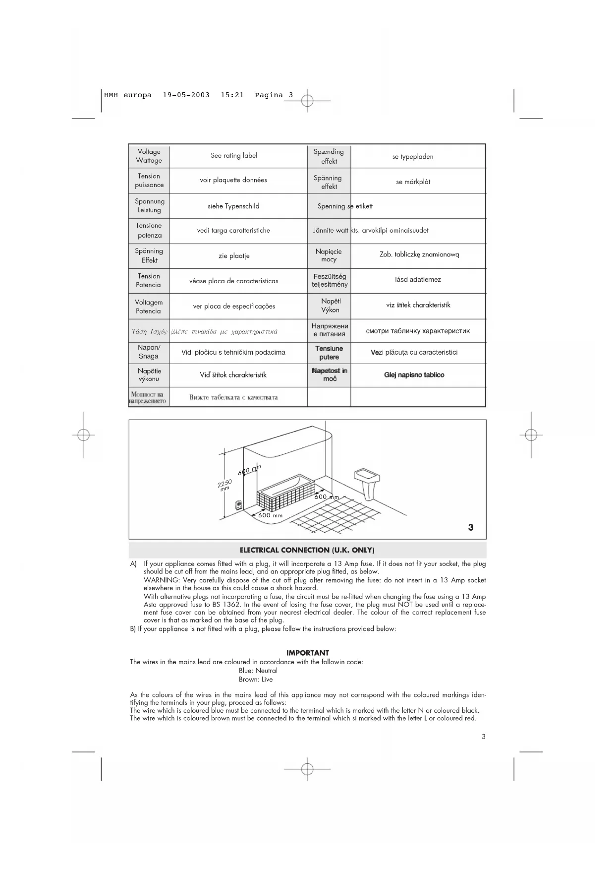 ELECTRICAL CONNECTION (U.K. ONLY)