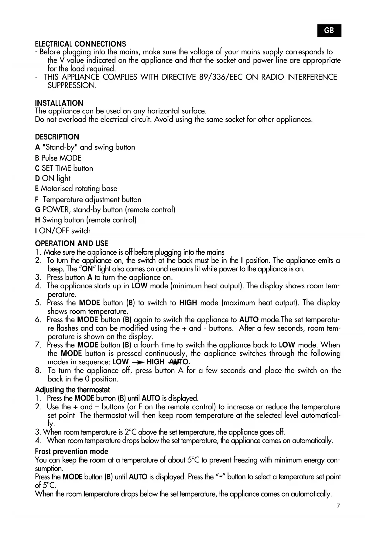 - THIS APPLIANCE COMPLIES WITH DIRECTIVE 89/336/EEC ON RADIO INTERFERENCE SUPPRESSION.