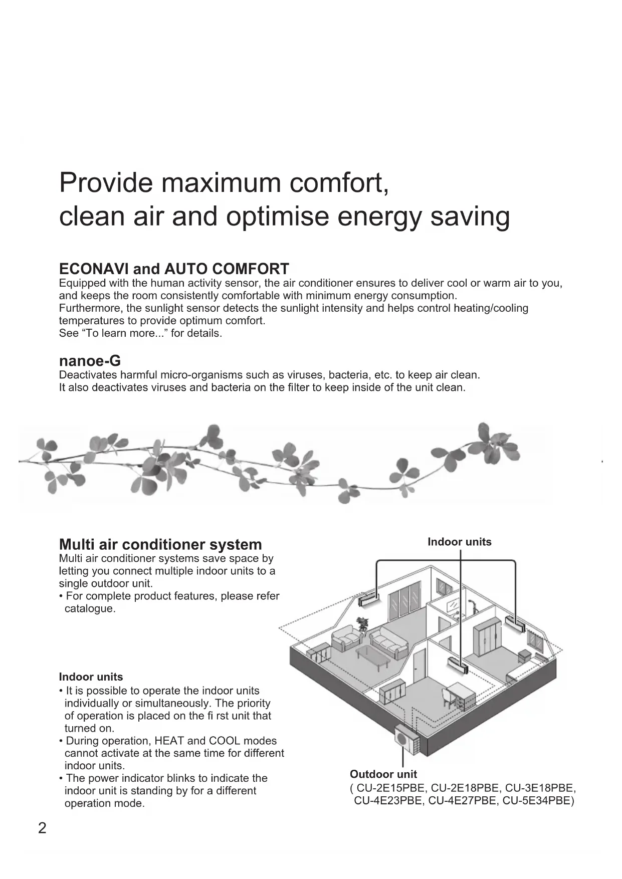 CU-E7PKE CU-E9PKE CU-E12PKE CU-E15PKE CU-E18PKE CU-E21PKE CU-E24PKE CU-2E15PBE CU-2E18PBE CU-3E18PBE CU-4E23PBE CU-4E27PBE CU-5E34PBE Operating Instructions