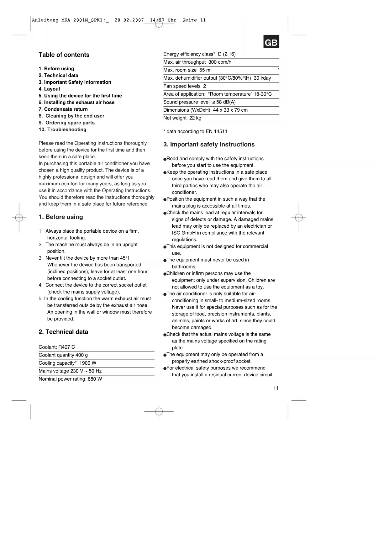 MKA 2001M - Climatisation EINHELL - Free user manual and instructions