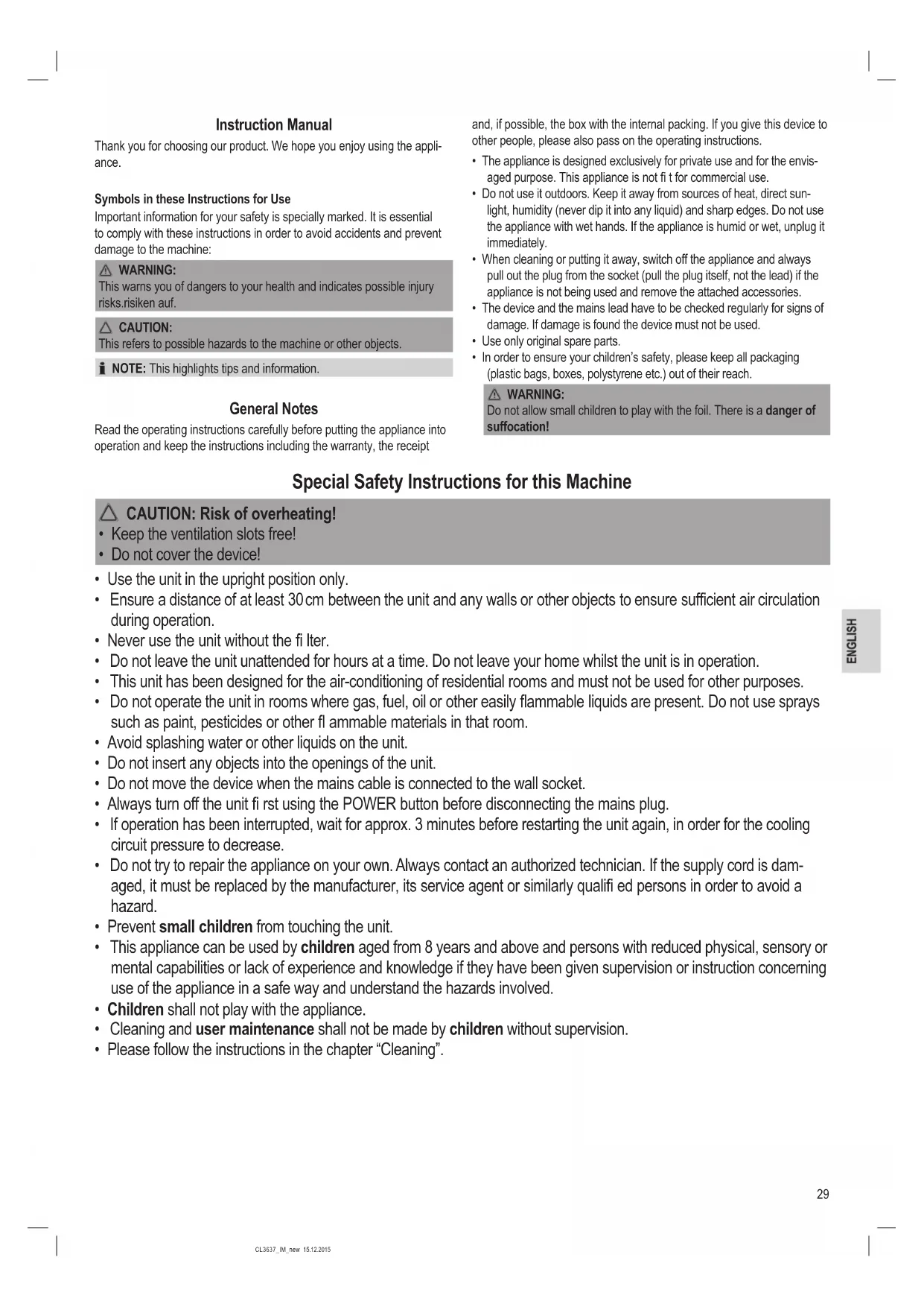 Download the instructions for your Climatisation in PDF format for free! Find your manual CL 3637 - CLATRONIC and take your electronic device back in hand. On this page are published all the documents necessary for the use of your device. CL 3637 by CLATRONIC.