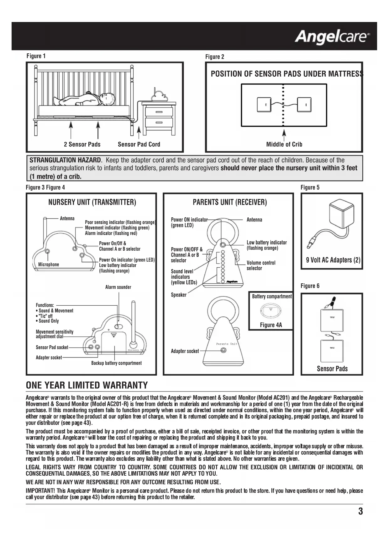 Rechargeable Movement & Sound Monitor (Model AC201-R) is free from defects in materials and workmanship for a period of one (1) year from the date of the original purchase. If this monitoring system fails to function properly when used as directed under normal conditions, within the one year period, Angelcare