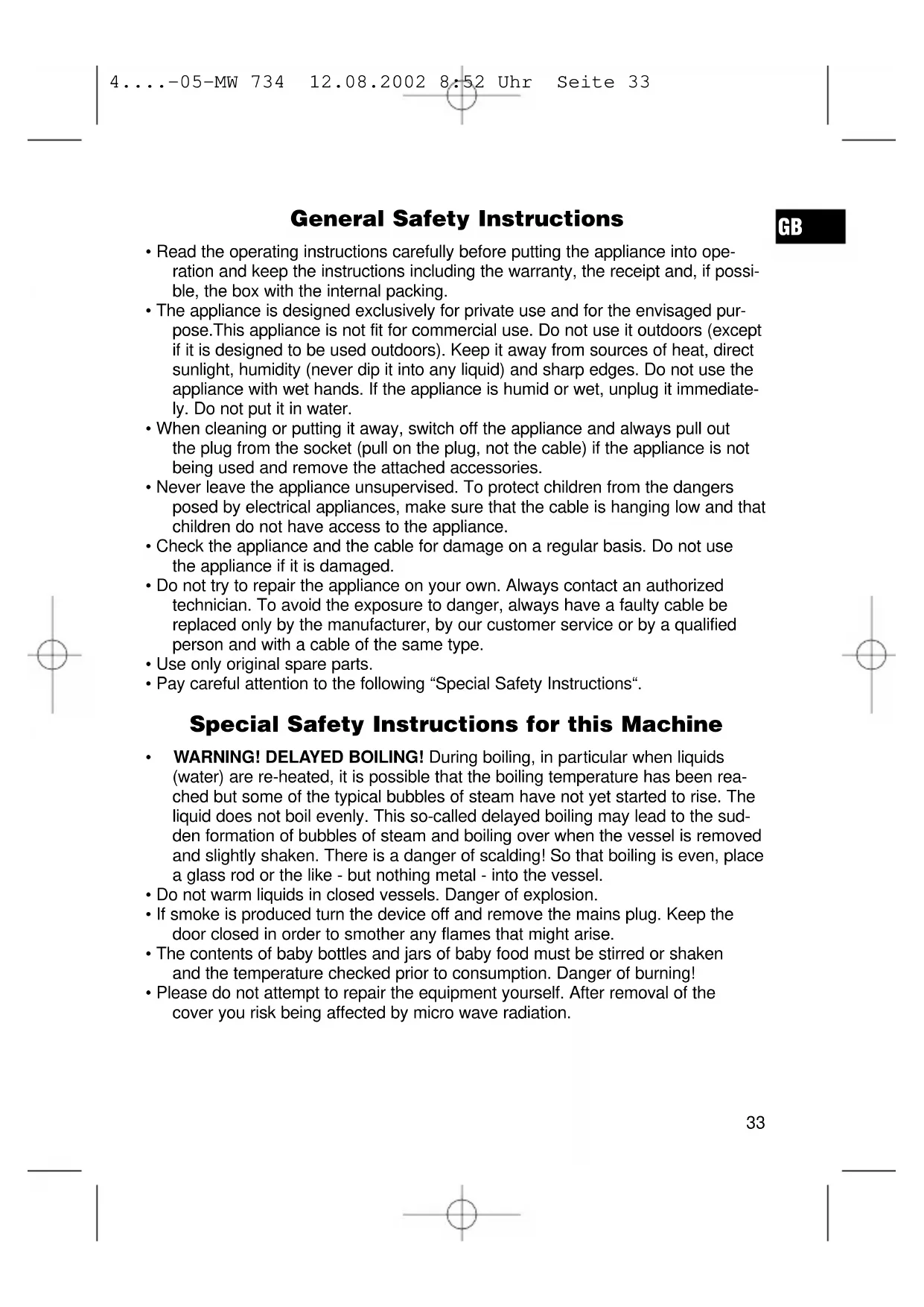 - WARNING! DELAYED BOILING! During boiling, in particular when liquids (water) are re-heated, it is possible that the boiling temperature has been rea- ched but some of the typical bubbles of steam have not yet started to rise. The liquid does not boil evenly. This so-called delayed boiling may lead to the sud- den formation of bubbles of steam and boiling over when the vessel is removed and slightly shaken. There is a danger of scalding! So that boiling is even, place a glass rod or the like - but nothing metal - into the vessel.