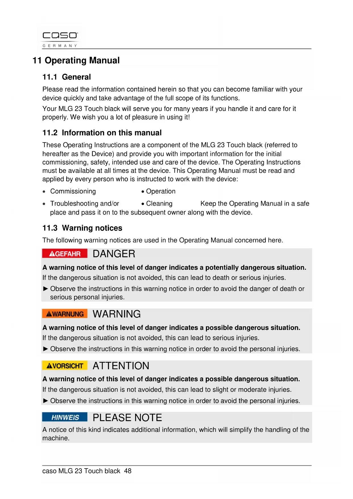 Find the device manual for free MLG 23 Touch CASO in PDF.