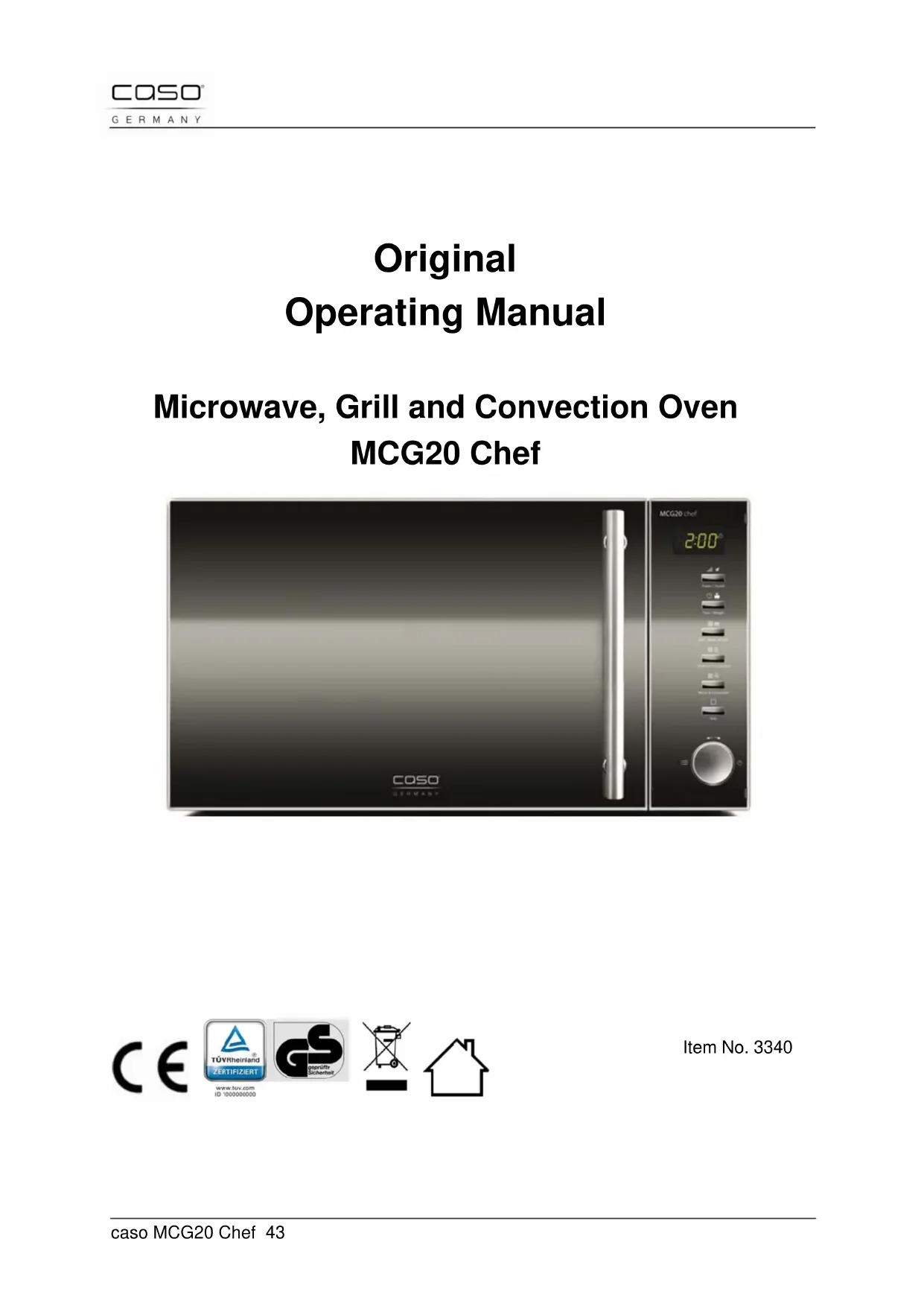 Download the instructions for your Microwave Oven in PDF format for free! Find your manual MCG20 Chef - CASO and take your electronic device back in hand. On this page are published all the documents necessary for the use of your device. MCG20 Chef by CASO.