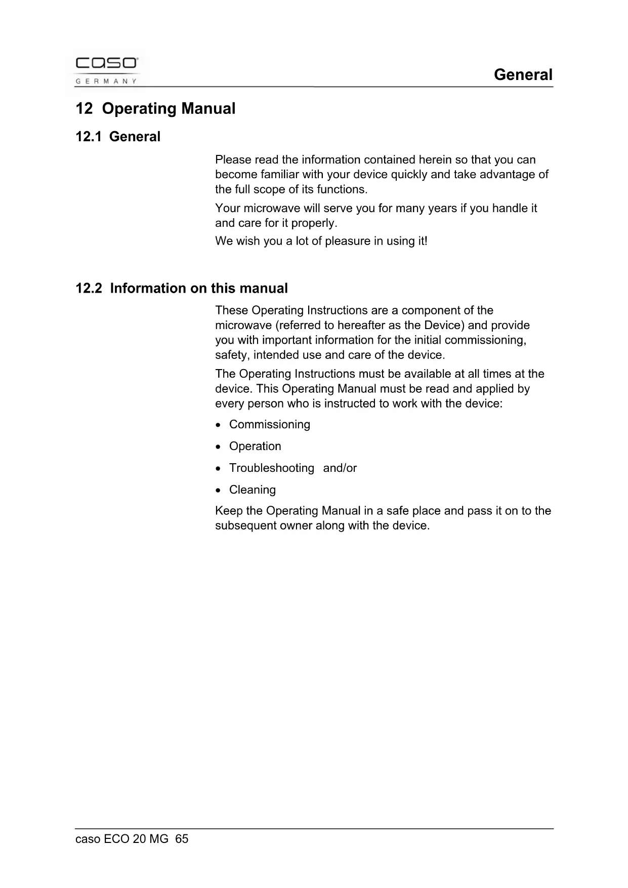 ECO 20 MG - Microwave Oven CASO - Free user manual and instructions