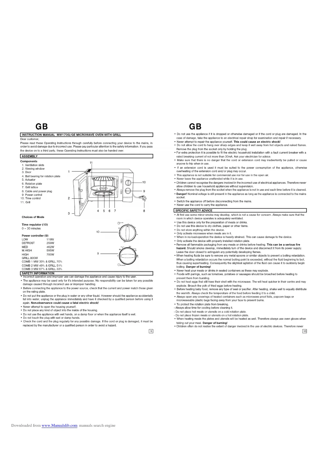 MODE D'EMPLOI MW170G/GE FOUR MICRO-ONDES AVEC GRIL