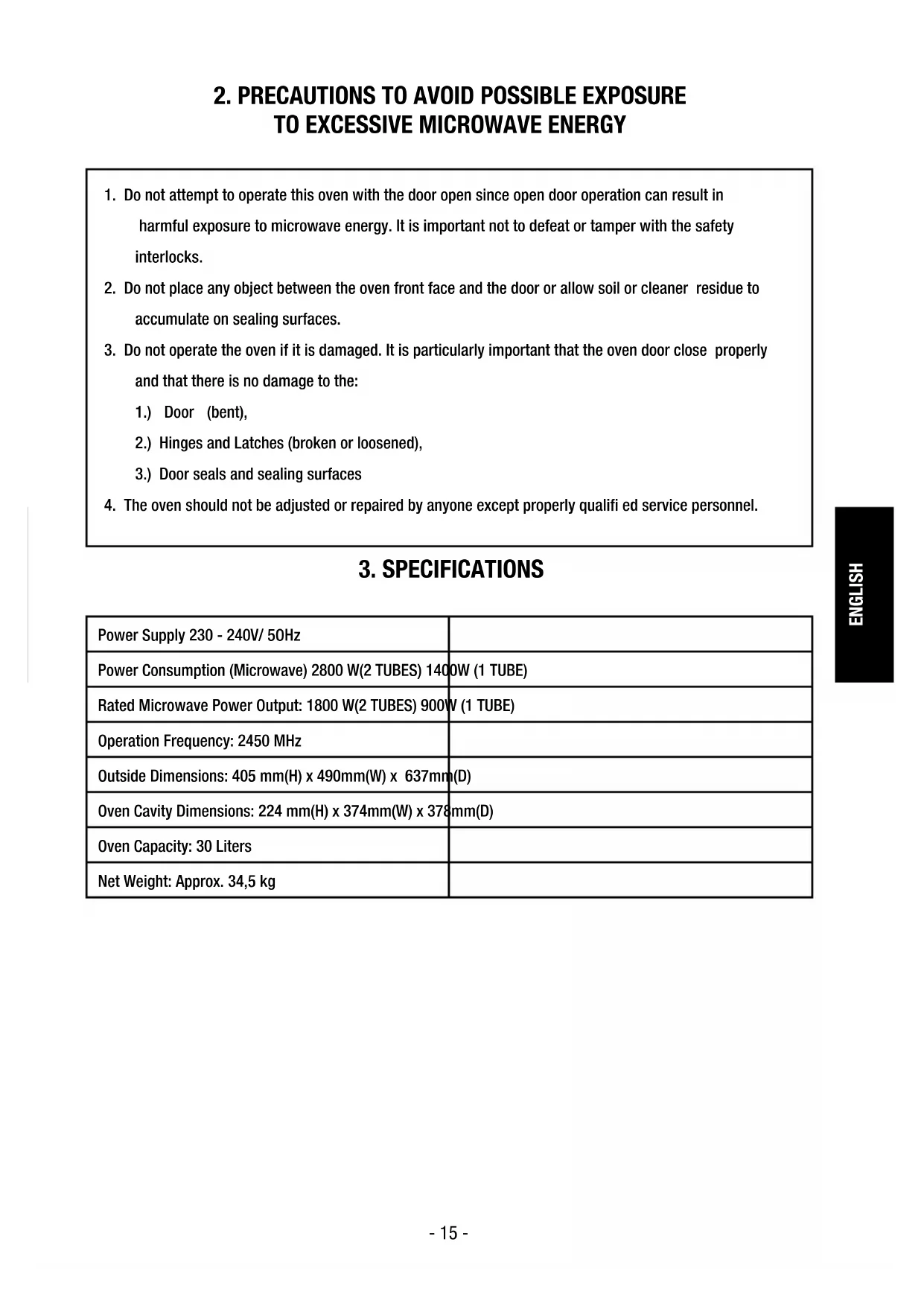 2. PRECAUTIONS TO AVOID POSSIBLE EXPOSURE TO EXCESSIVE MICROWAVE ENERGY
