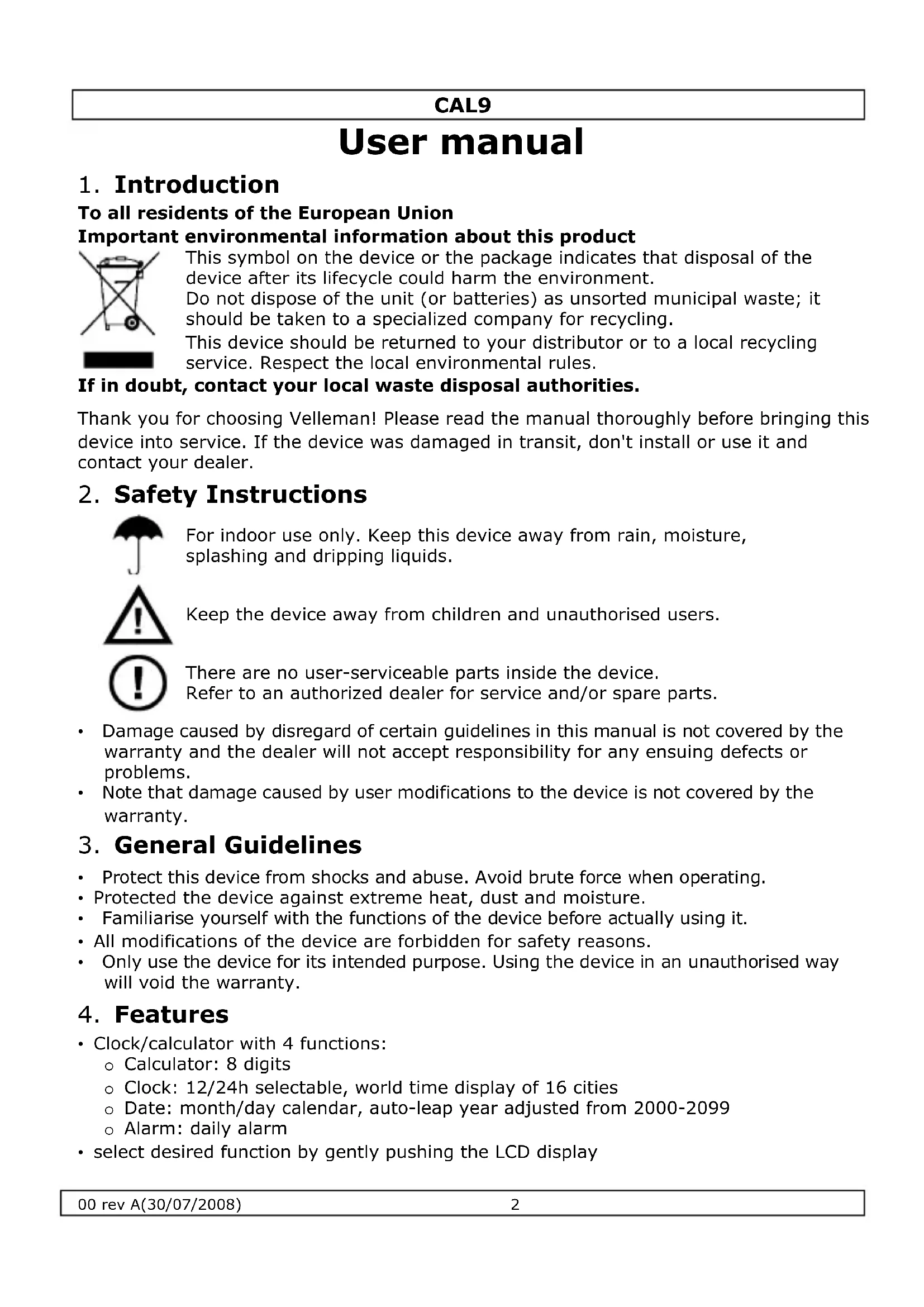 USER MANUAL CAL9 VELLEMAN