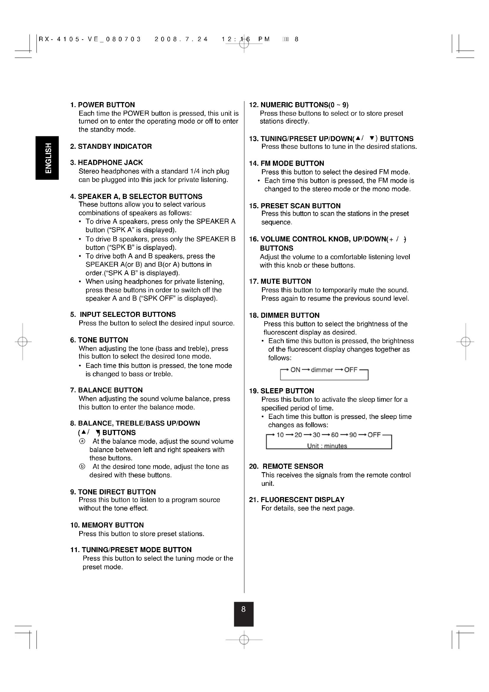 select the preset mode. RX-4105-VE_080703 2008.7.24 12:16 PM 페이지 1314 Operating the sleep timer