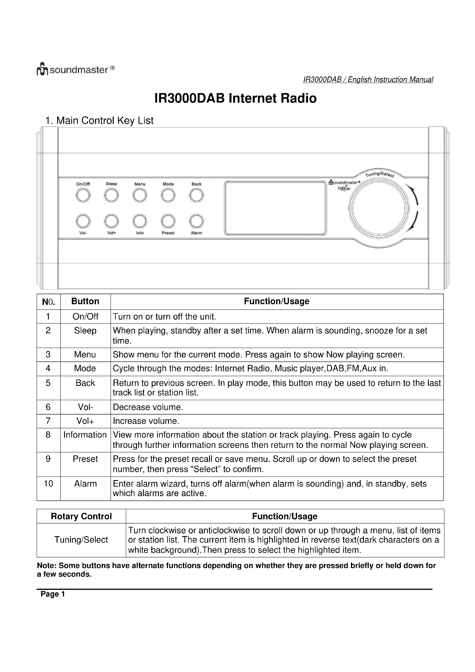 Download the instructions for your Radio in PDF format for free! Find your manual IR3000DAB - Soundmaster and take your electronic device back in hand. On this page are published all the documents necessary for the use of your device. IR3000DAB by Soundmaster.