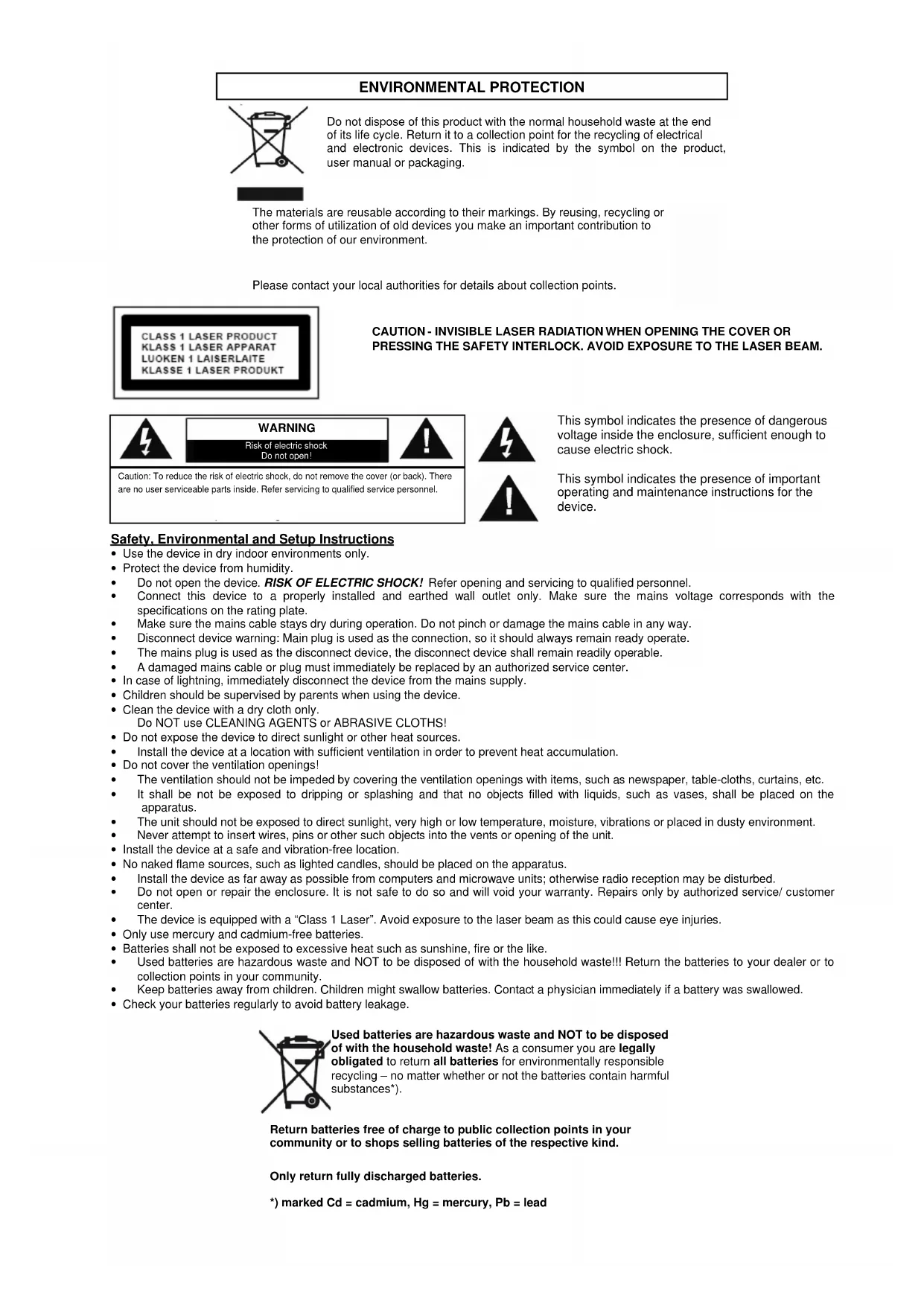CLASS 1 LASER PRODUCT KLASS 1 LASER APPARAT LUOKEN 1 LAISERLAITE KLASSE 1 LASER PRODUKTFORSIKTIG! DET OPPSTÄR USYNLIG LASERSTRÅLING NÄR DEKSLET ÅPNES ELLER SIKKERHETSFORRIGLINGEN TRYKKES. UNNGÅ EKSPONERING FOR LASERSTRÅLEN.