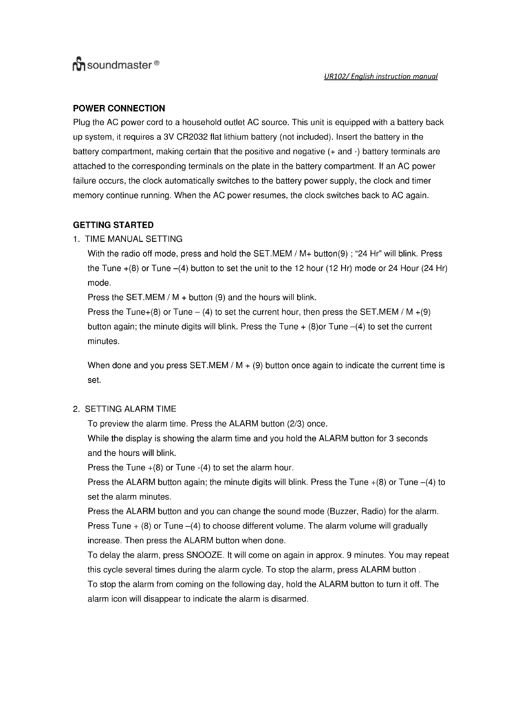 USER MANUAL UR102 Soundmaster
