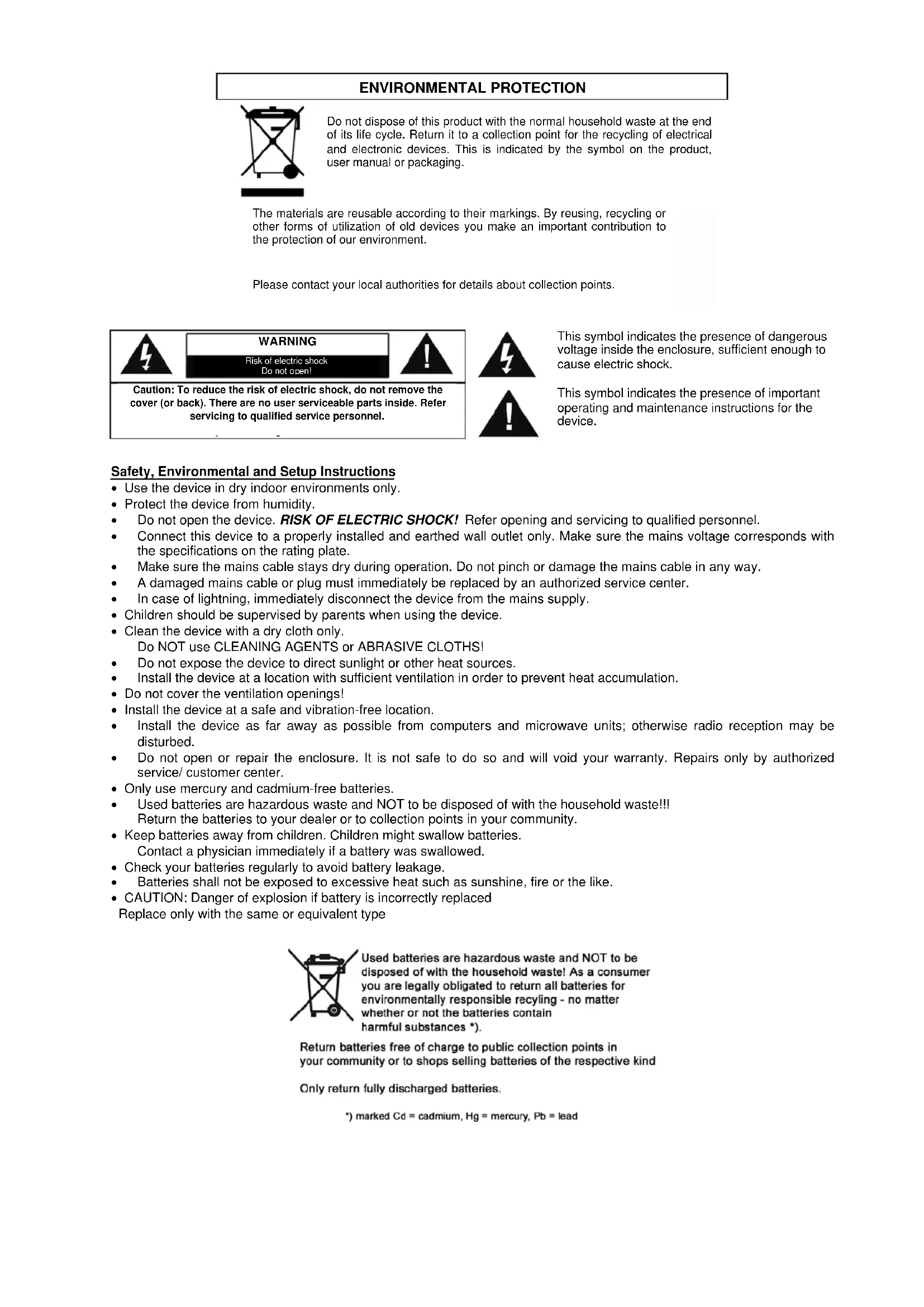 - Used batteries are hazardous waste and NOT to be disposed of with the household waste!!