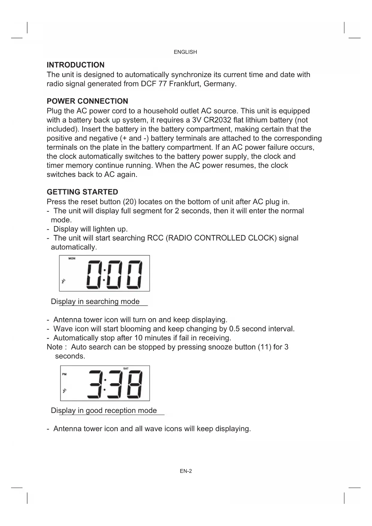 - The unit will start searching RCC (RADIO CONTROLLED CLOCK) signal automatically.