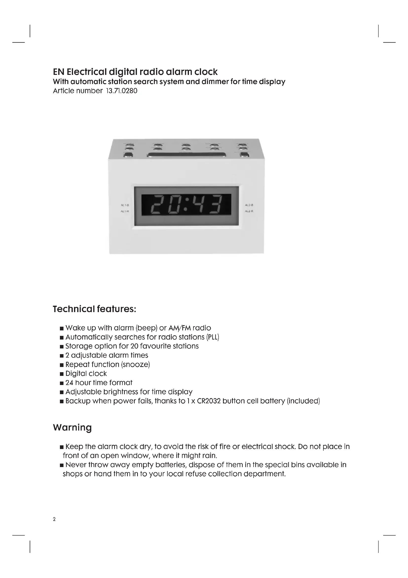 EN Electrical digital radio alarm clock