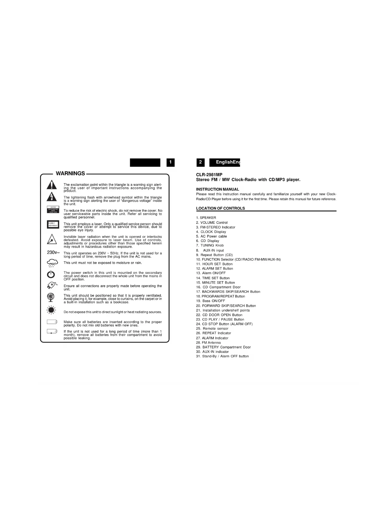 CLR2981MP - Alarm clock radio ROADSTAR - Free user manual and instructions