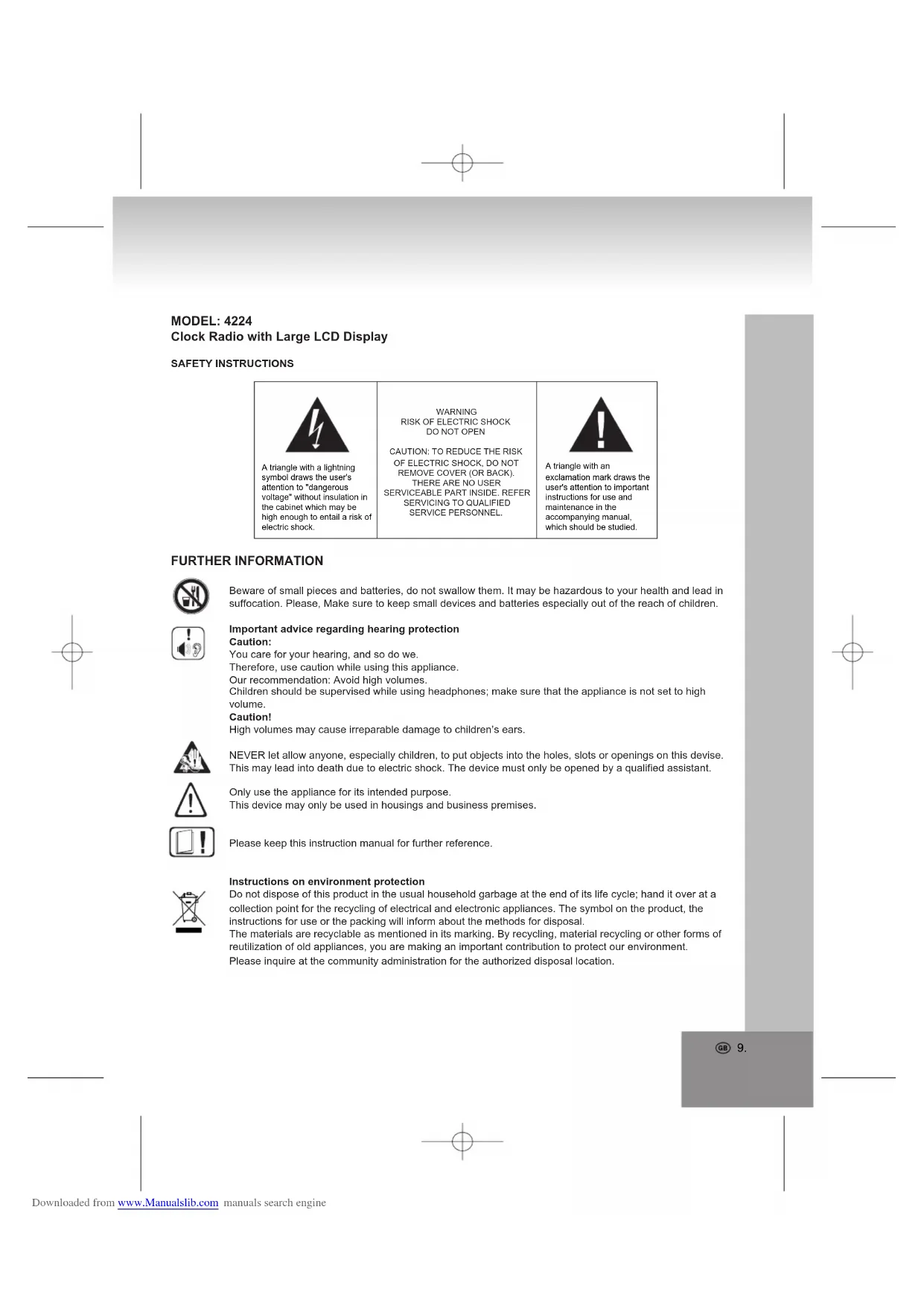 4224 - Alarm clock radio ELTA - Free user manual and instructions