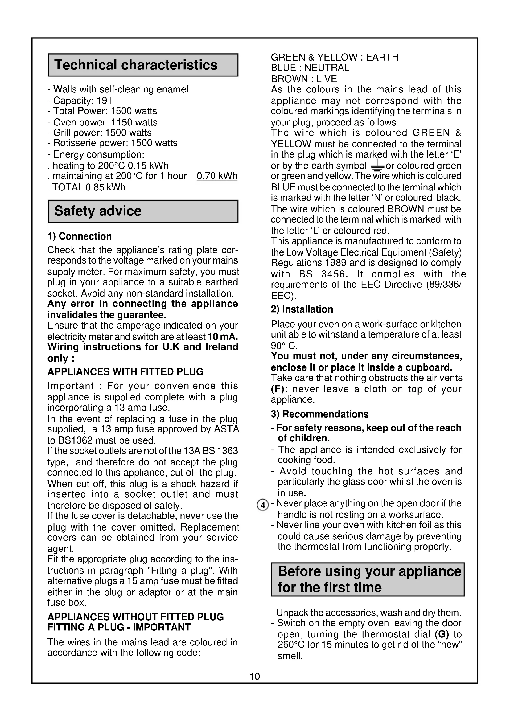 This appliance is manufactured to conform to the Low Voltage Electrical Equipment (Safety) Regulations 1989 and is designed to comply with BS 3456. It complies with the requirements of the EEC Directive (89/336/EEC).
