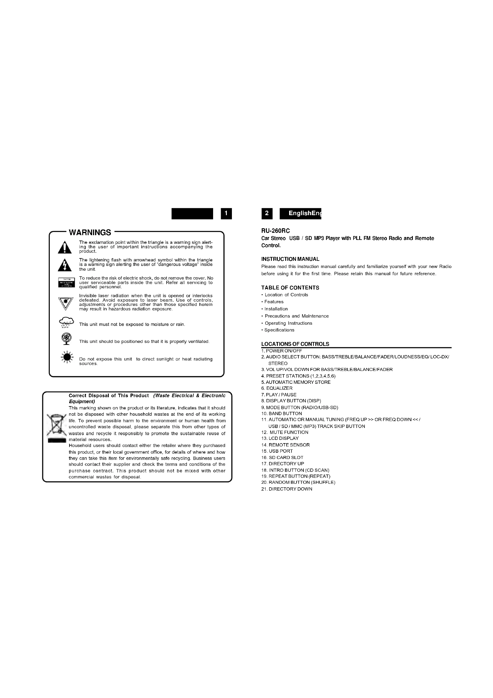 Download the instructions for your Car stereo in PDF format for free! Find your manual RU260RC - ROADSTAR and take your electronic device back in hand. On this page are published all the documents necessary for the use of your device. RU260RC by ROADSTAR.