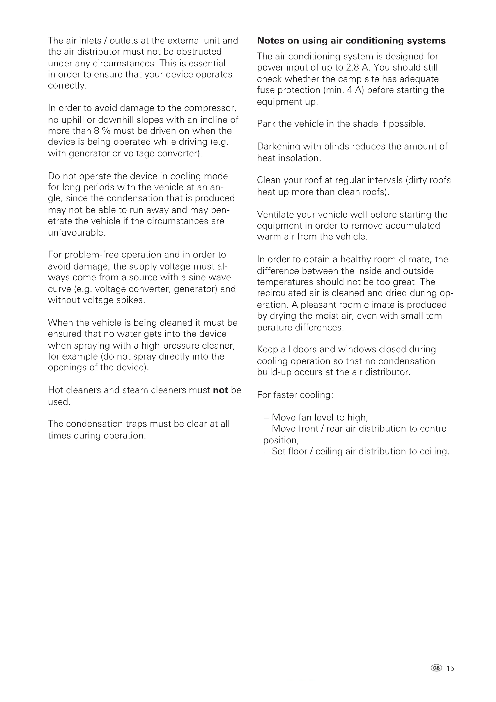 - Notes on using air conditioning systems p. 15