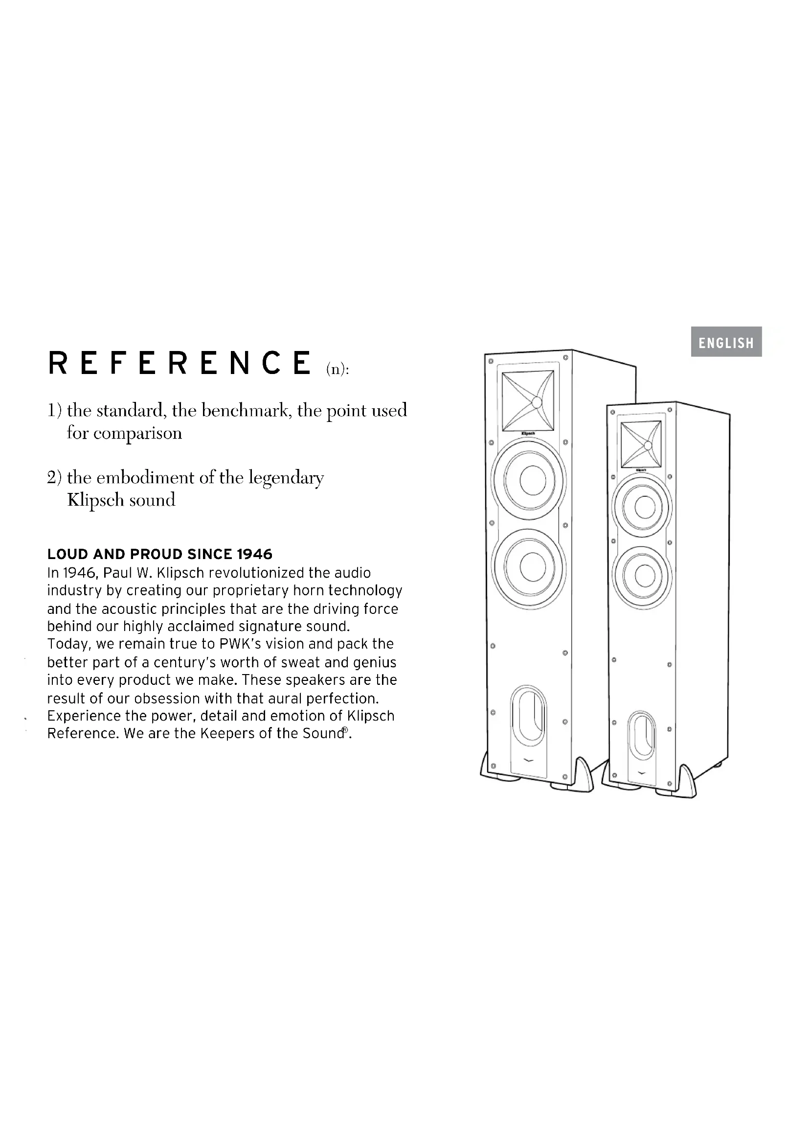 In 1946, Paul W. Klipsch revolutionized the audio industry by creating our proprietary horn technology and the acoustic principles that are the driving force behind our highly acclaimed signature sound. Today, we remain true to PWK’s vision and pack the better part of a century’s worth of sweat and genius into every product we make. These speakers are the result of our obsession with that aural perfection. Experience the power, detail and emotion of Klipsch Reference. We are the Keepers of the Sound