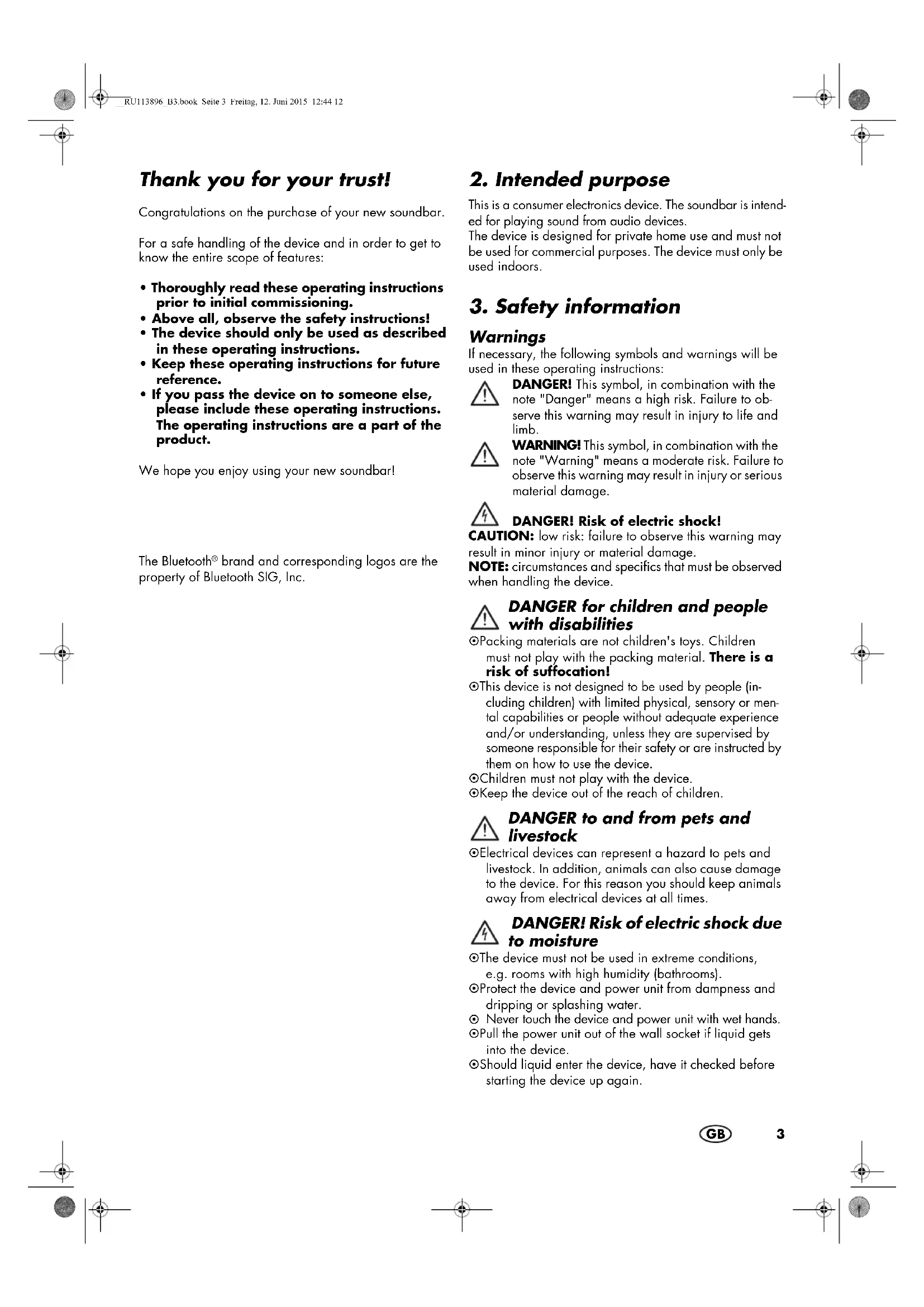 - If you pass the device on to someone else, please include these operating instructions. The operating instructions are a part of the product. We hope you enjoy using your new soundbar! The Bluetooth