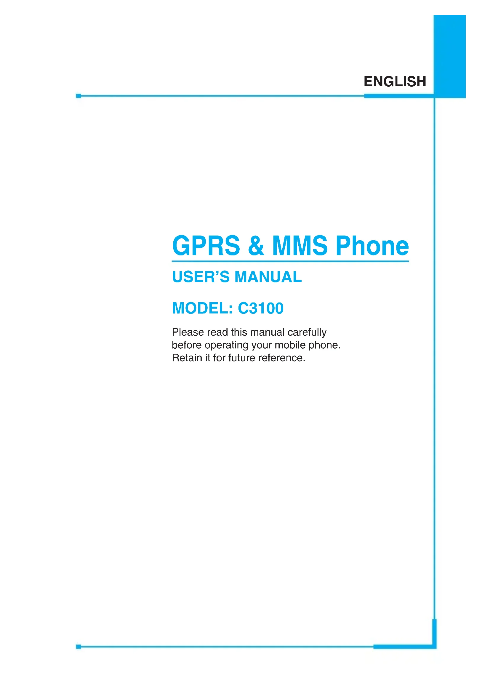 MODEL: C3100 Please read this manual carefully before operating your mobile phone. Retain it for future reference.Introduction Congraturations on your purchase of the advanced and compact C3100 cellular phone, designed to operate with the latest digital mobile communication technology. Important Information This user’s guide contains important information on the use and operation of this phone. Please read all the information carefully for optimal performance and to prevent any damage or misuse of the phone. Any changes or modifications not expressly approved in this user’s guide could void your warranty for this equipment.3 Guidelines for Safe and Efficient Use Read these simple guidelines. Breaking the rules may be dangerous or illegal. Further detailed information is given in this manual. Exposure to Radio Frequency Energy Radio wave exposure and Specific Absorption Rate (SAR) information This mobile phone model C3100 has been designed to comply with applicable safety requirement for exposure to radio waves. This requirement is based on scientific guidelines that include safety margins designed to assure this safety of all persons, regardless of age and health.