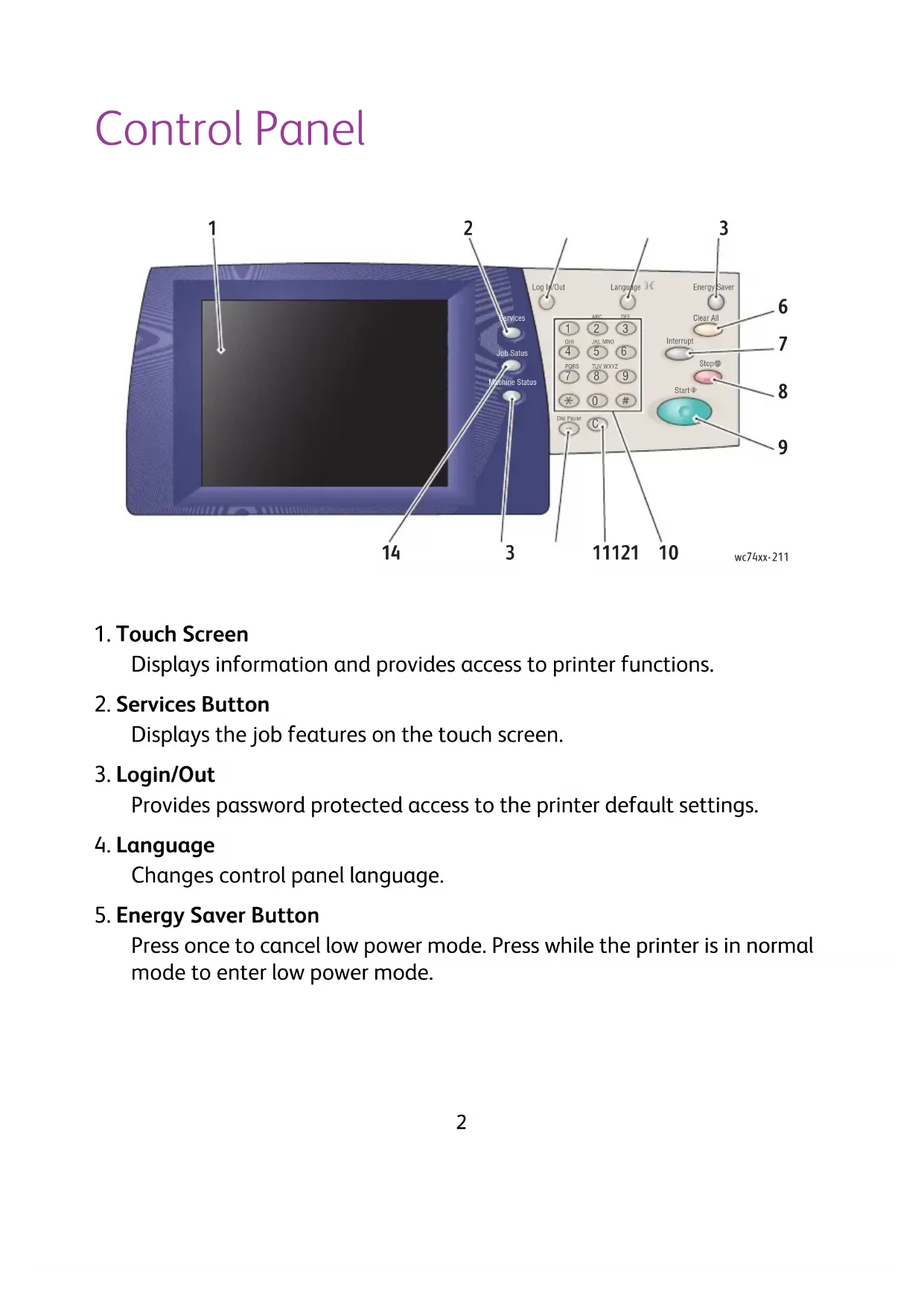 Press once to cancel low power mode. Press while the printer is in normal mode to enter low power mode. ABC GHI PQRS Dial PauseTUV WXYZJKL MNO DEF Stop InterruptClear AllEnergy SaverLog In/OutStartServicesJob SatusMachine Status